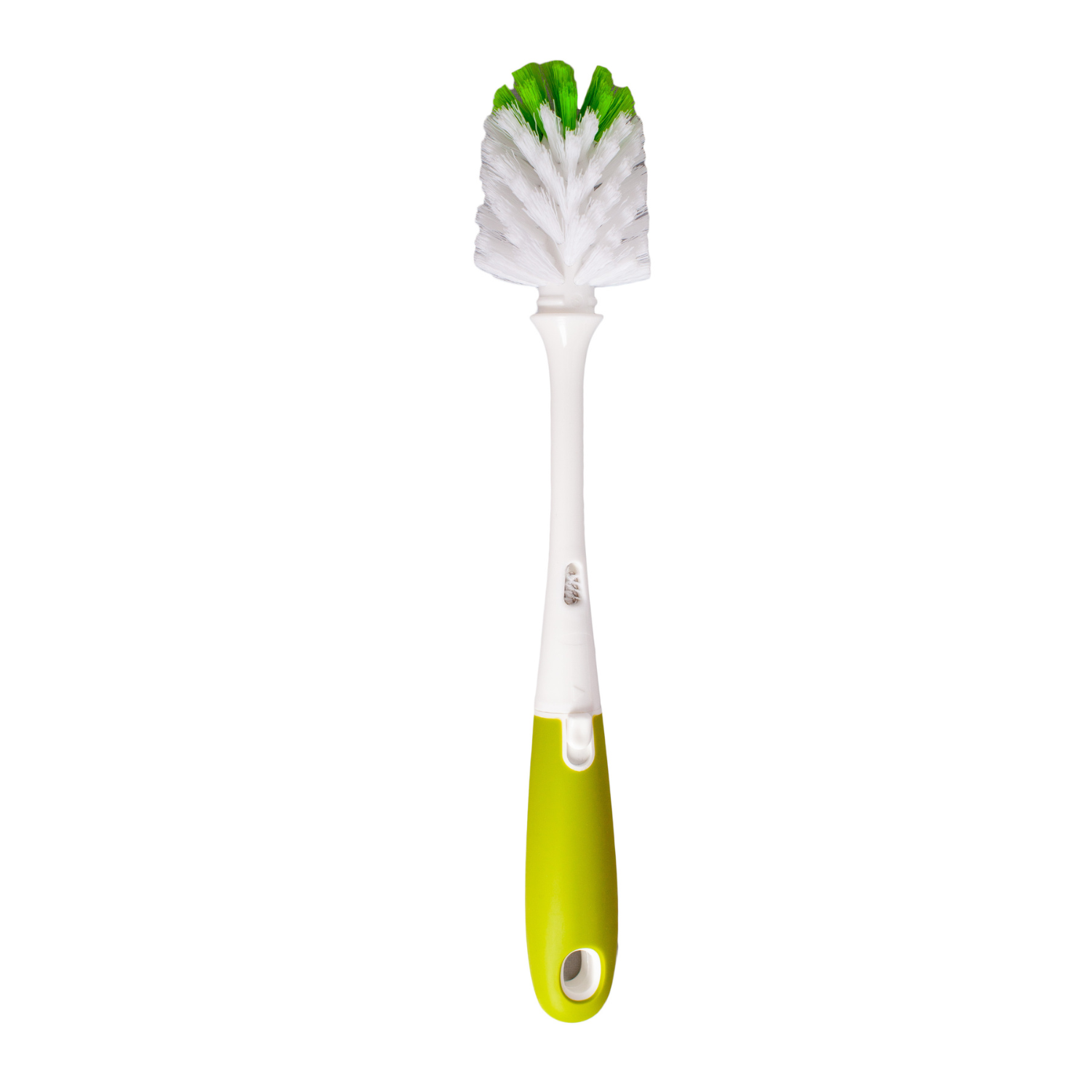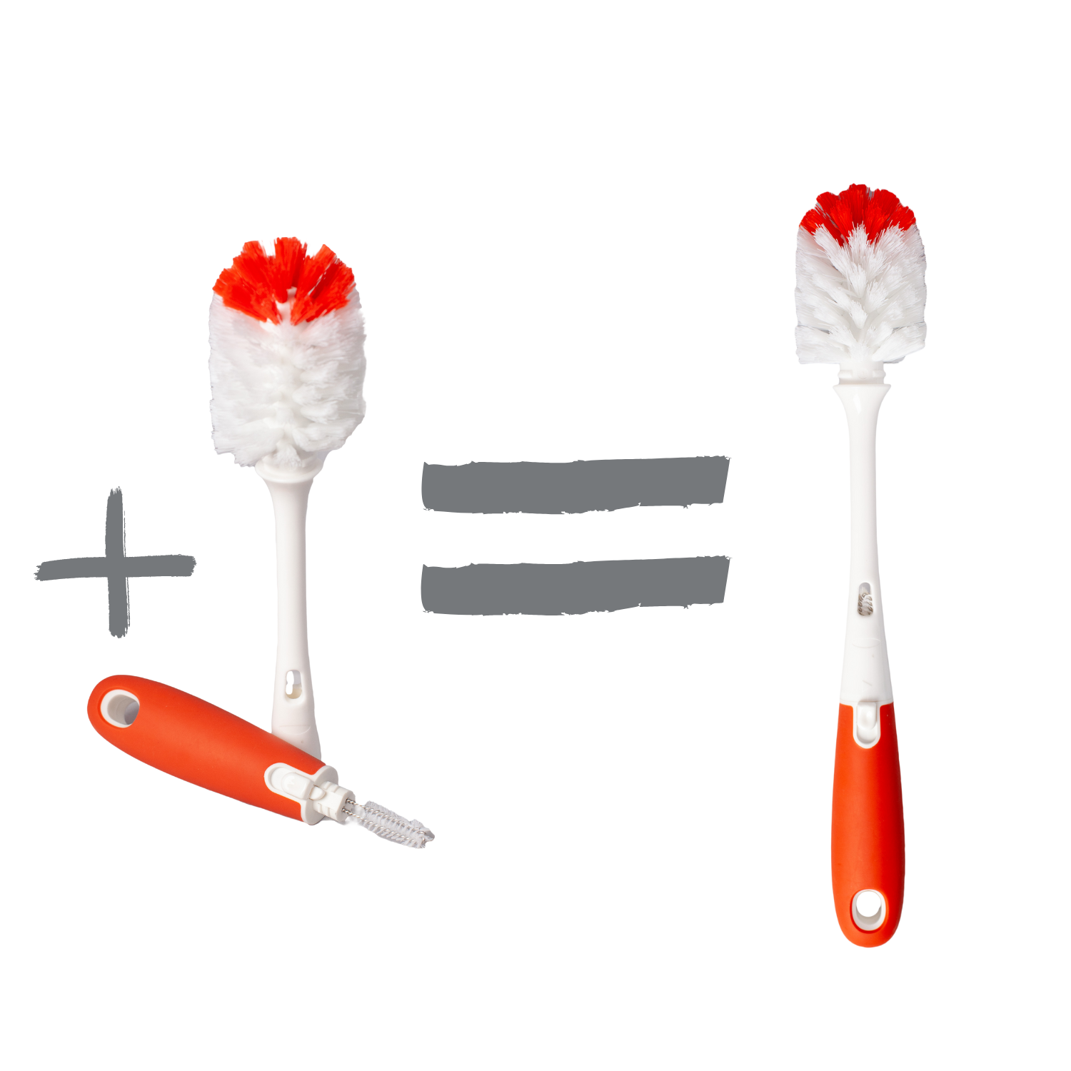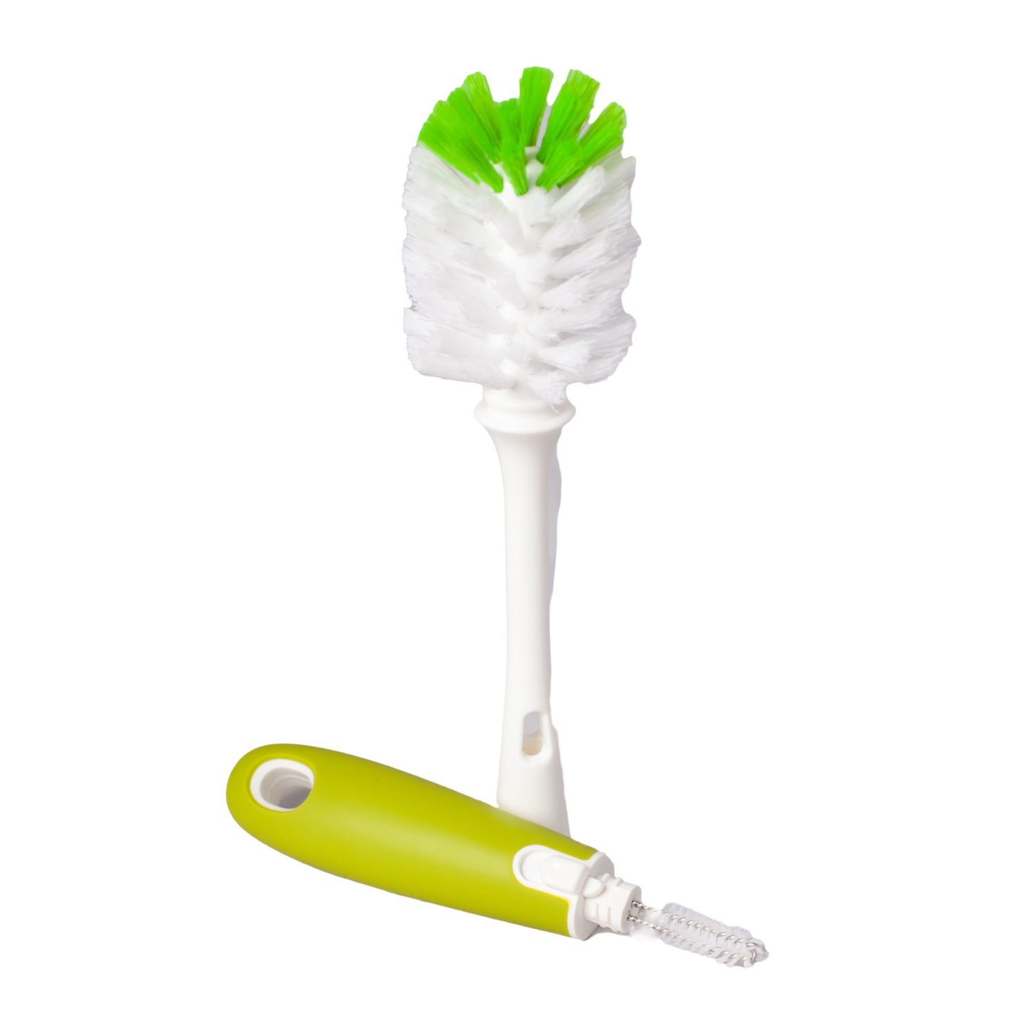 <P>Nuestro cepillo con diseño versátil y práctico 2 en 1 es apto para limpiar profundamente todos los biberones y accesorios. Cuenta con un cepillo más pequeño escondido en la base para limpiar las tetina y las válvulas anti cólicos. Además cuenta con un mango antideslizante. </P> <p> Por el material de Nylon que esta hecho, es completamente libre de BPA, plomo y ftalatos, lo que lo hace completamente seguro. El diseño especial hace que la botella sea más fácil de limpiar, incluyendo esquinas y fondos difíciles de alcanzar. Las cerdas suaves y resistentes ayudan a limpiar los biberones de plástico y de vidrio con facilidad y evitar ralladuras.</p>