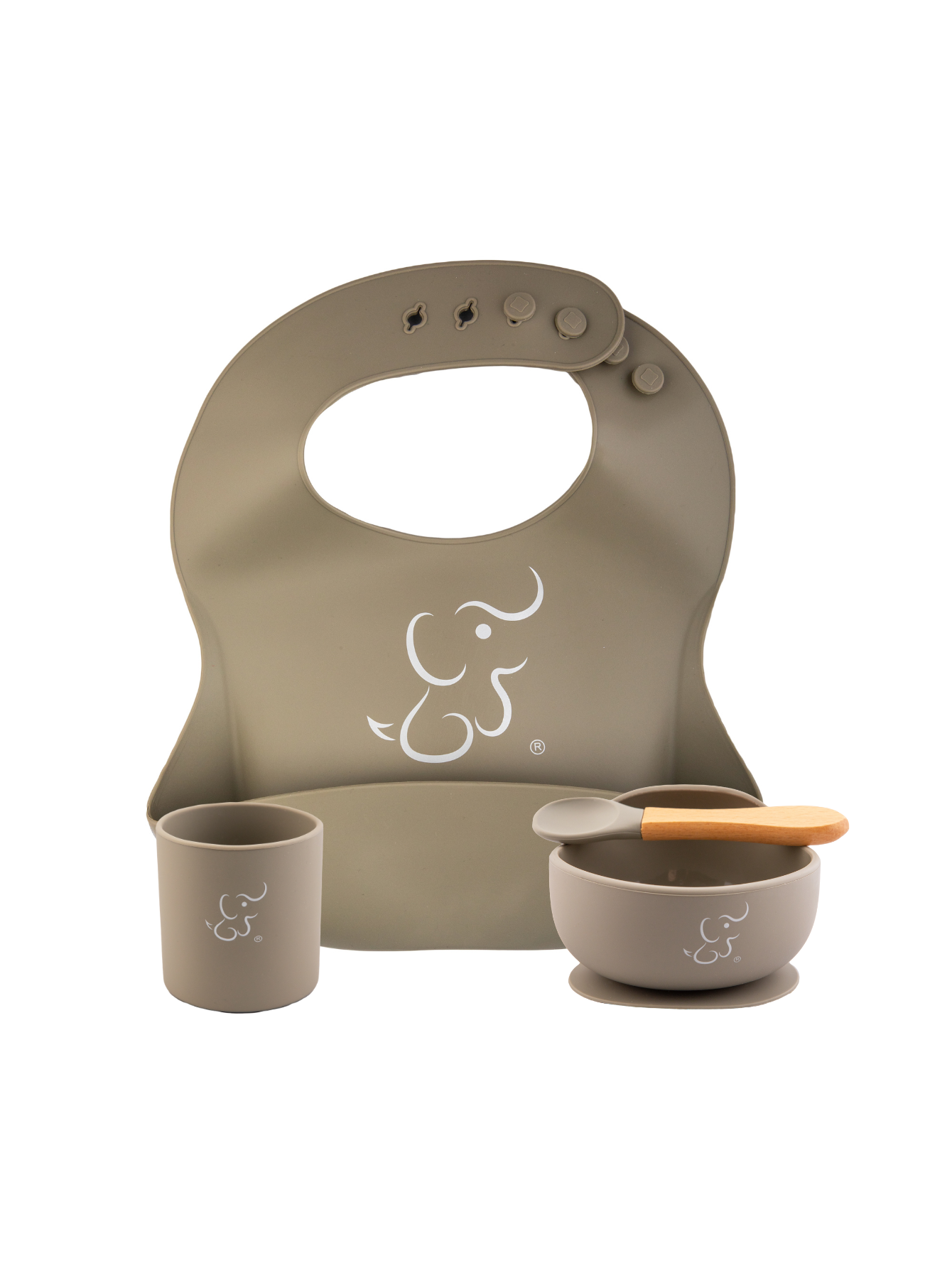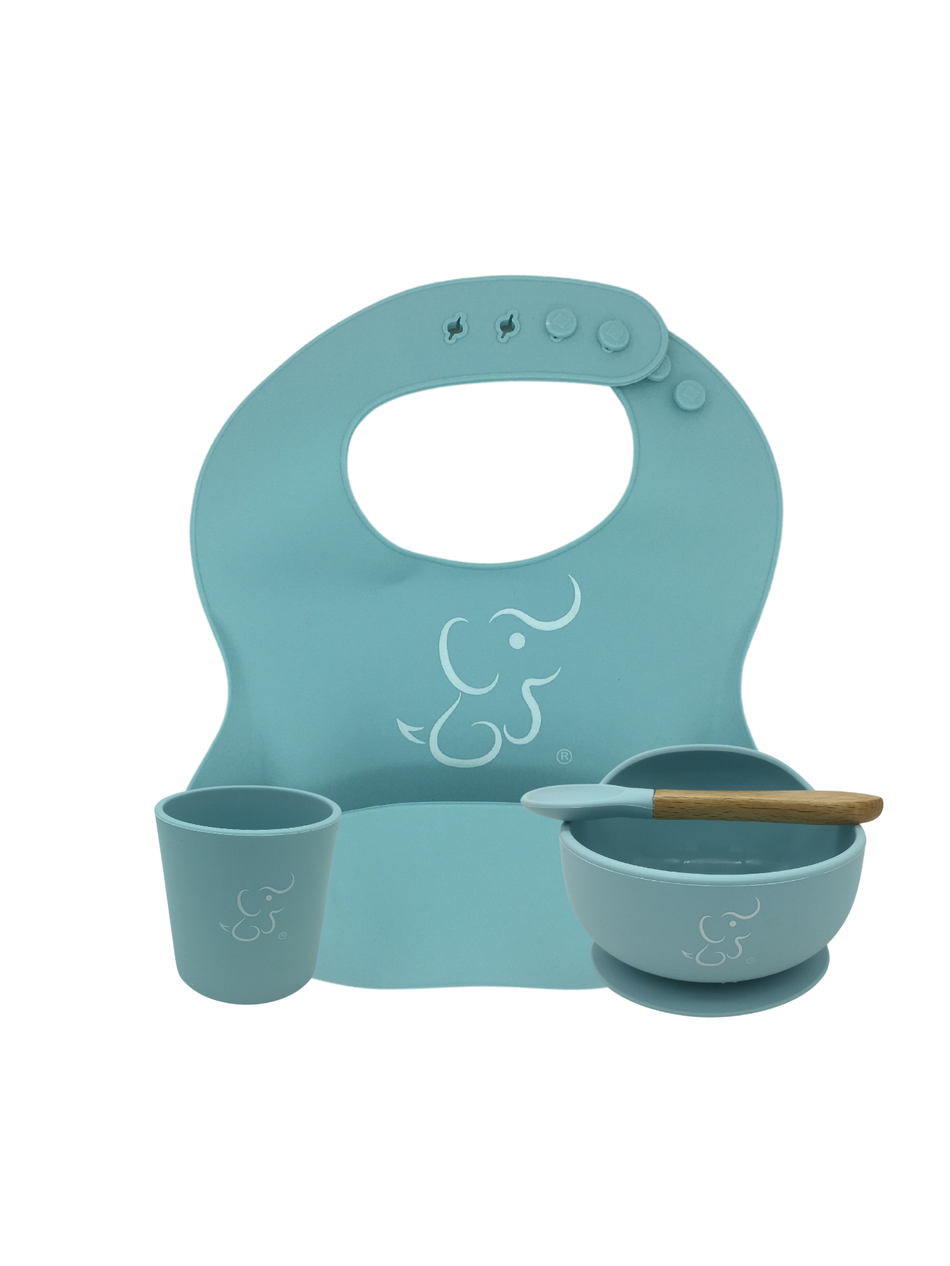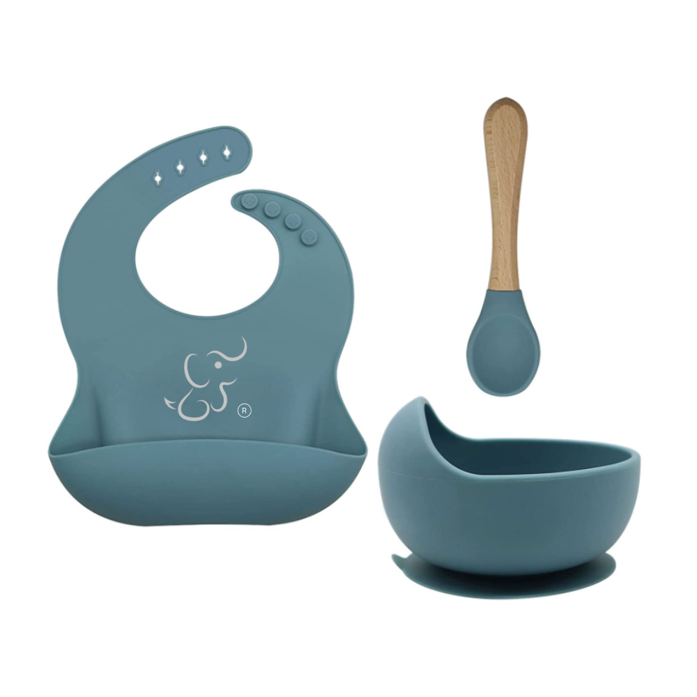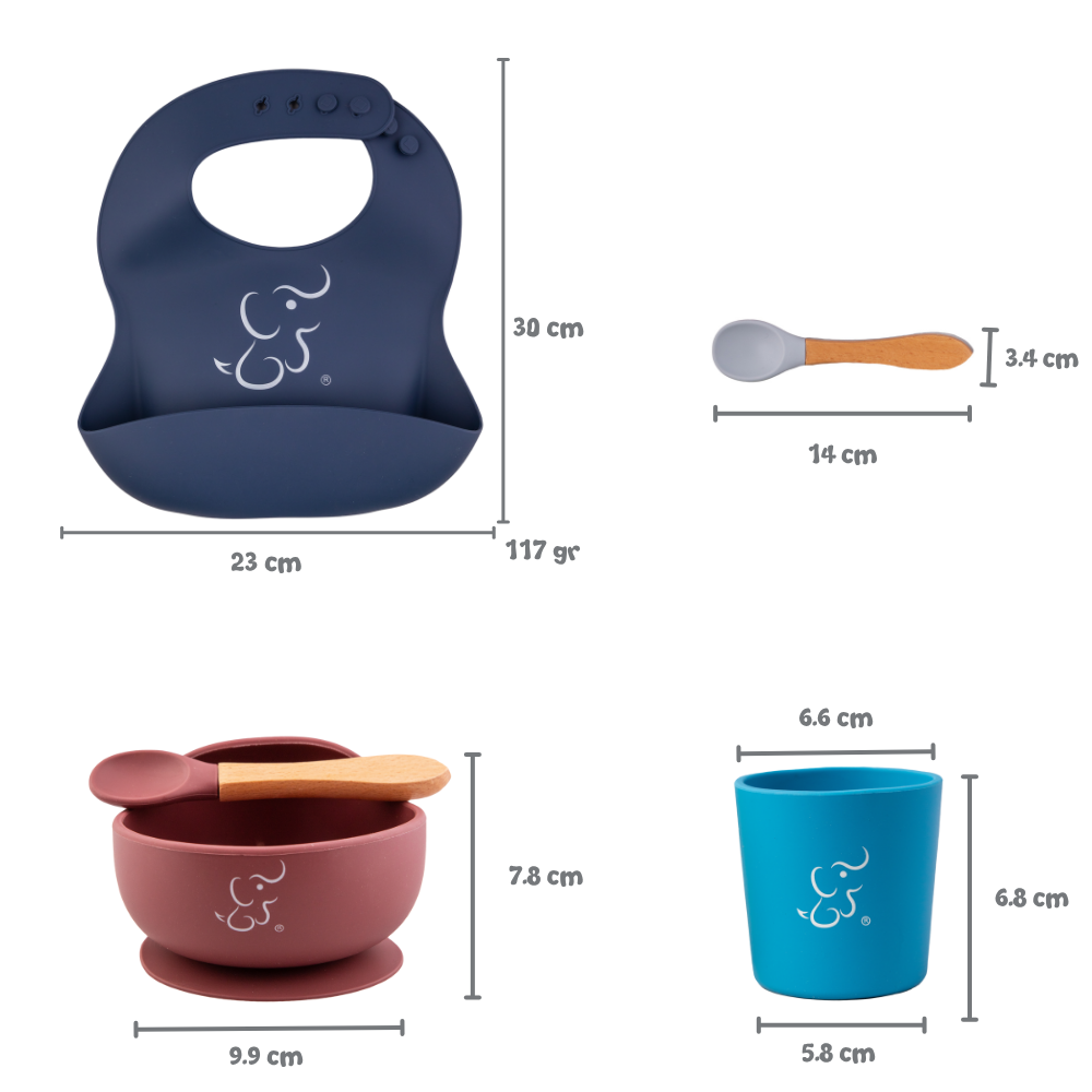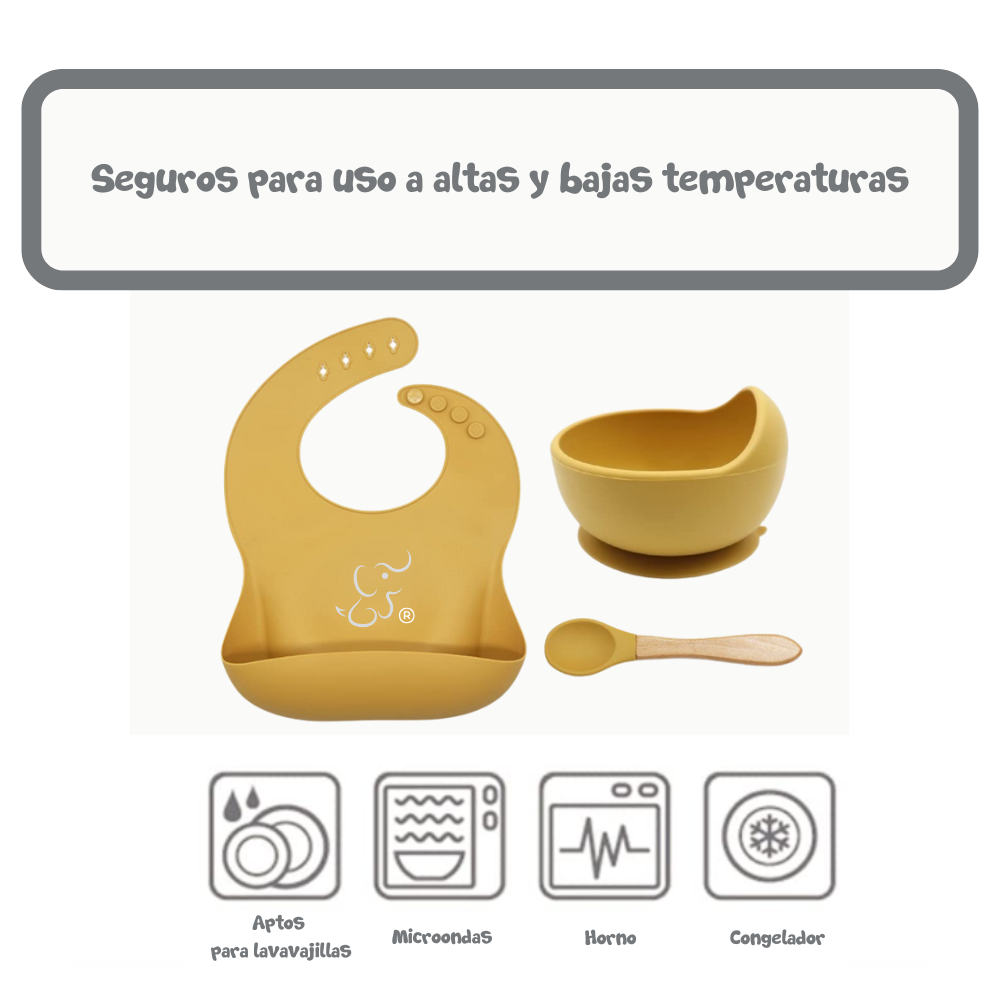 Juego de 1 platos hondo, 1 vaso y 1 babero de silicón Papu Baby 100% grado alimenticio