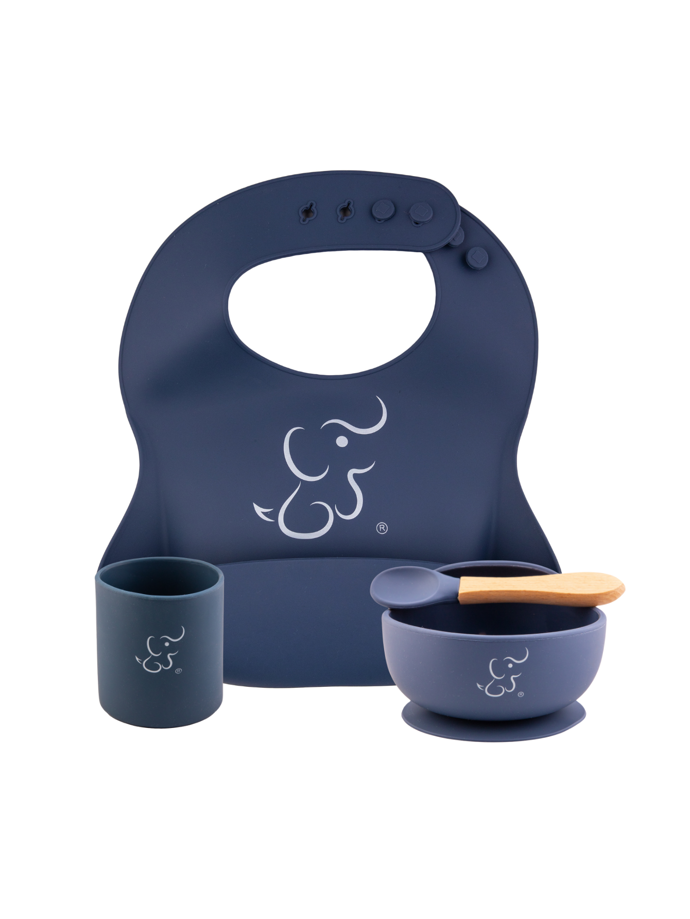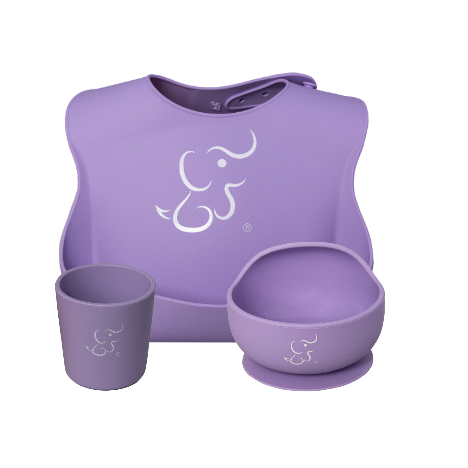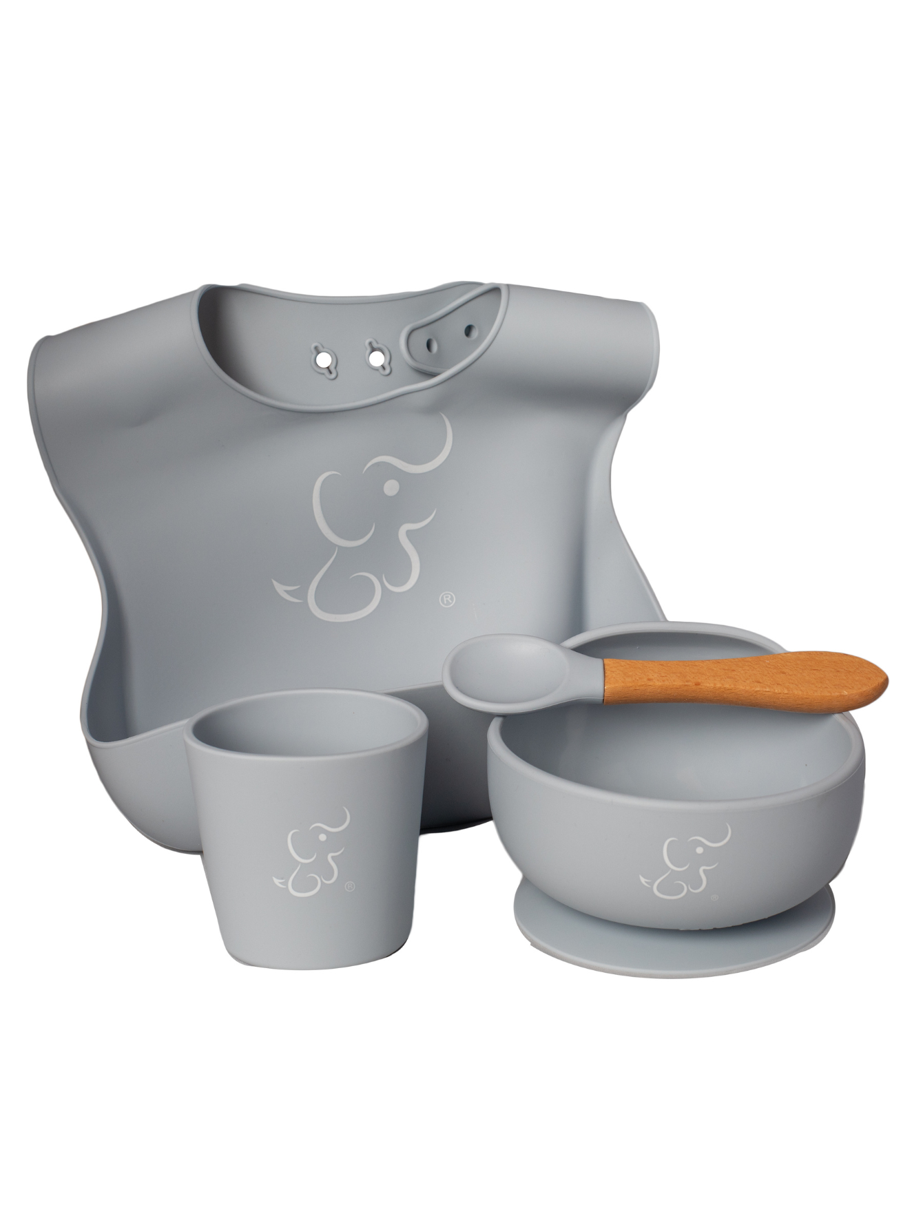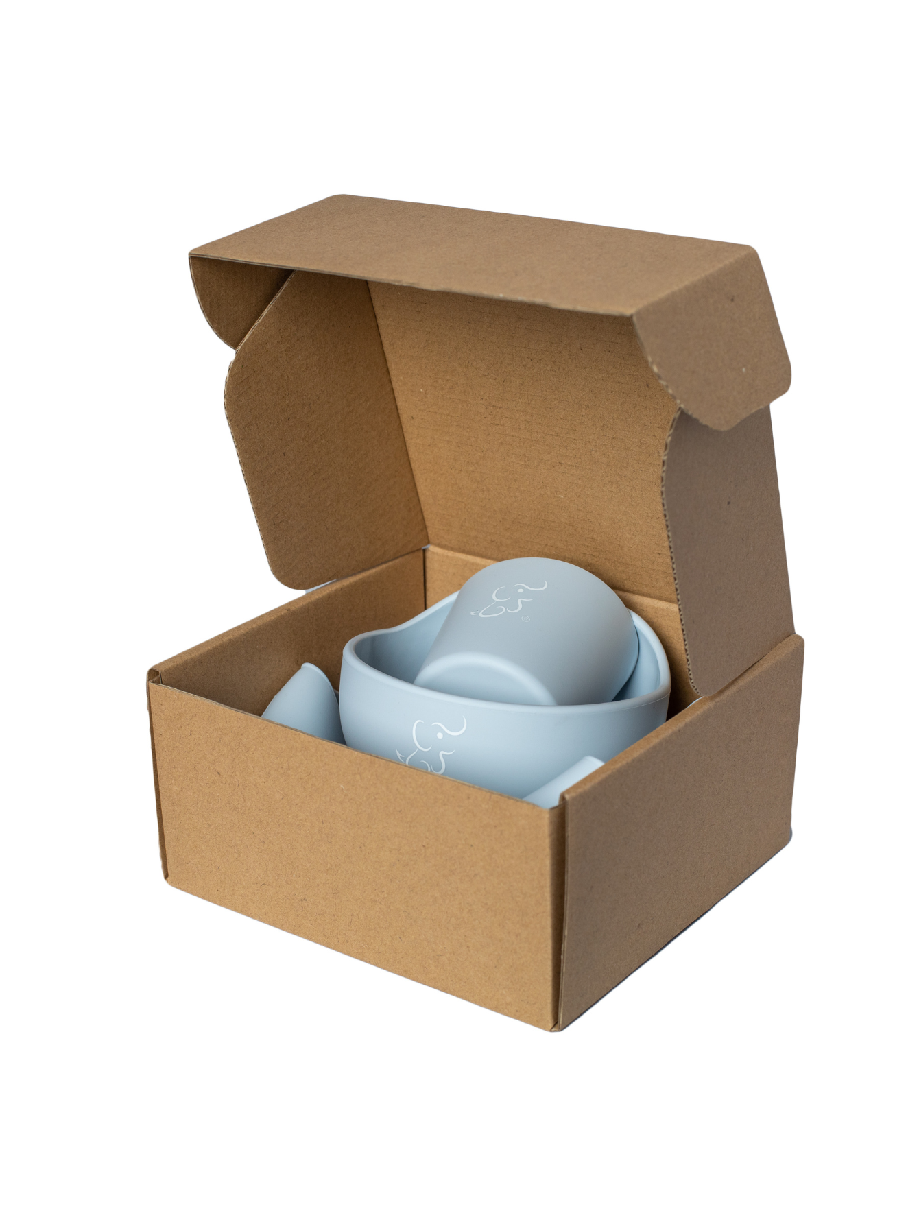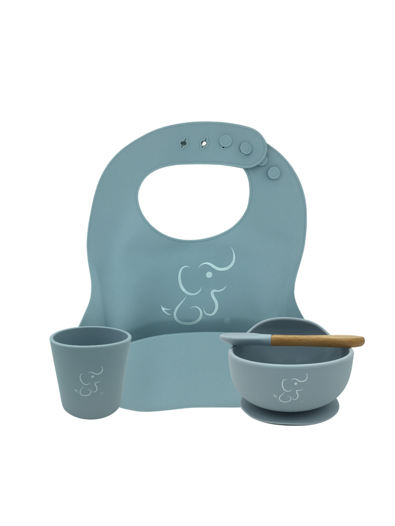 Juego de 1 platos hondo, 1 vaso y 1 babero de silicón Papu Baby 100% grado alimenticio