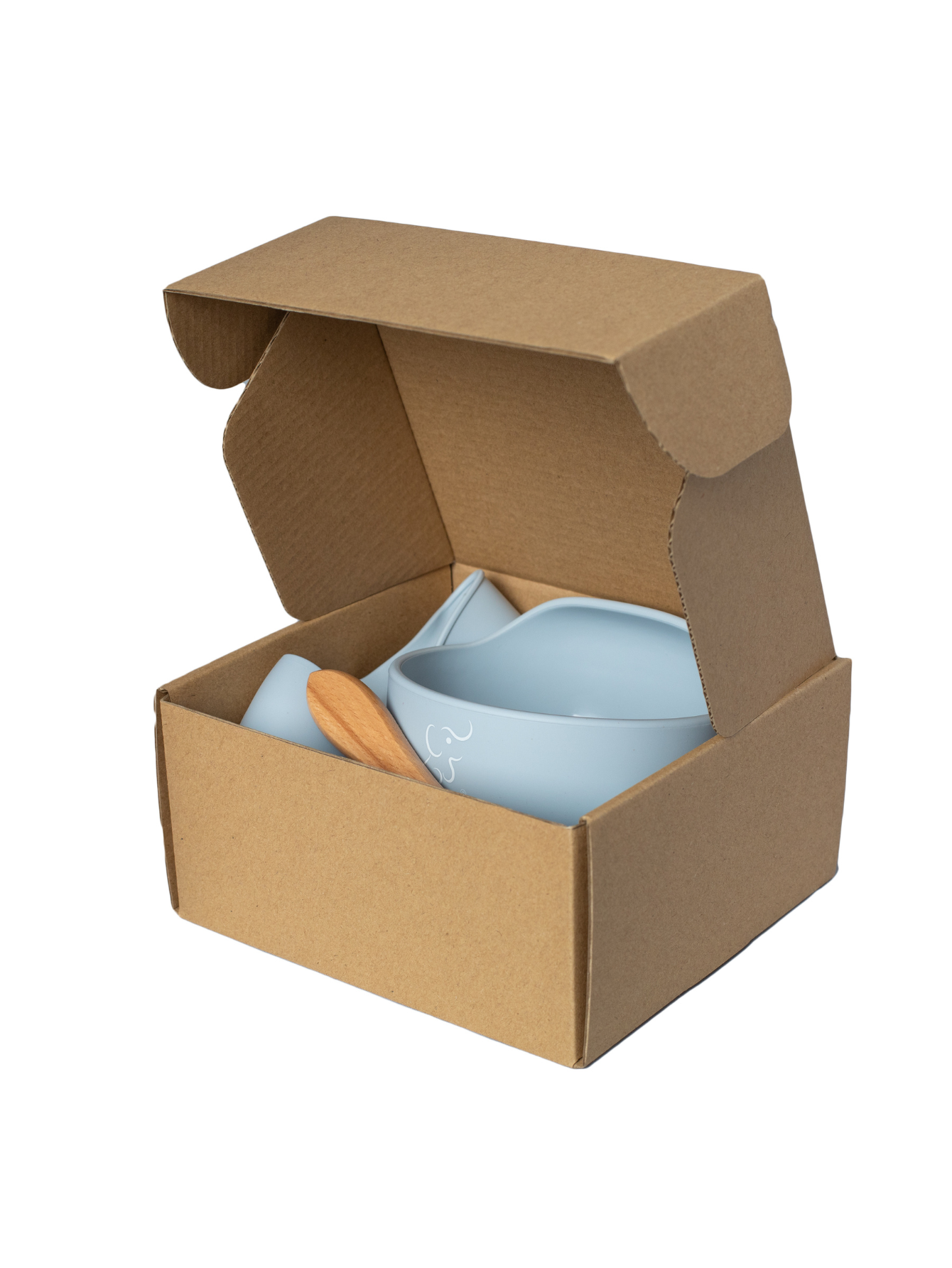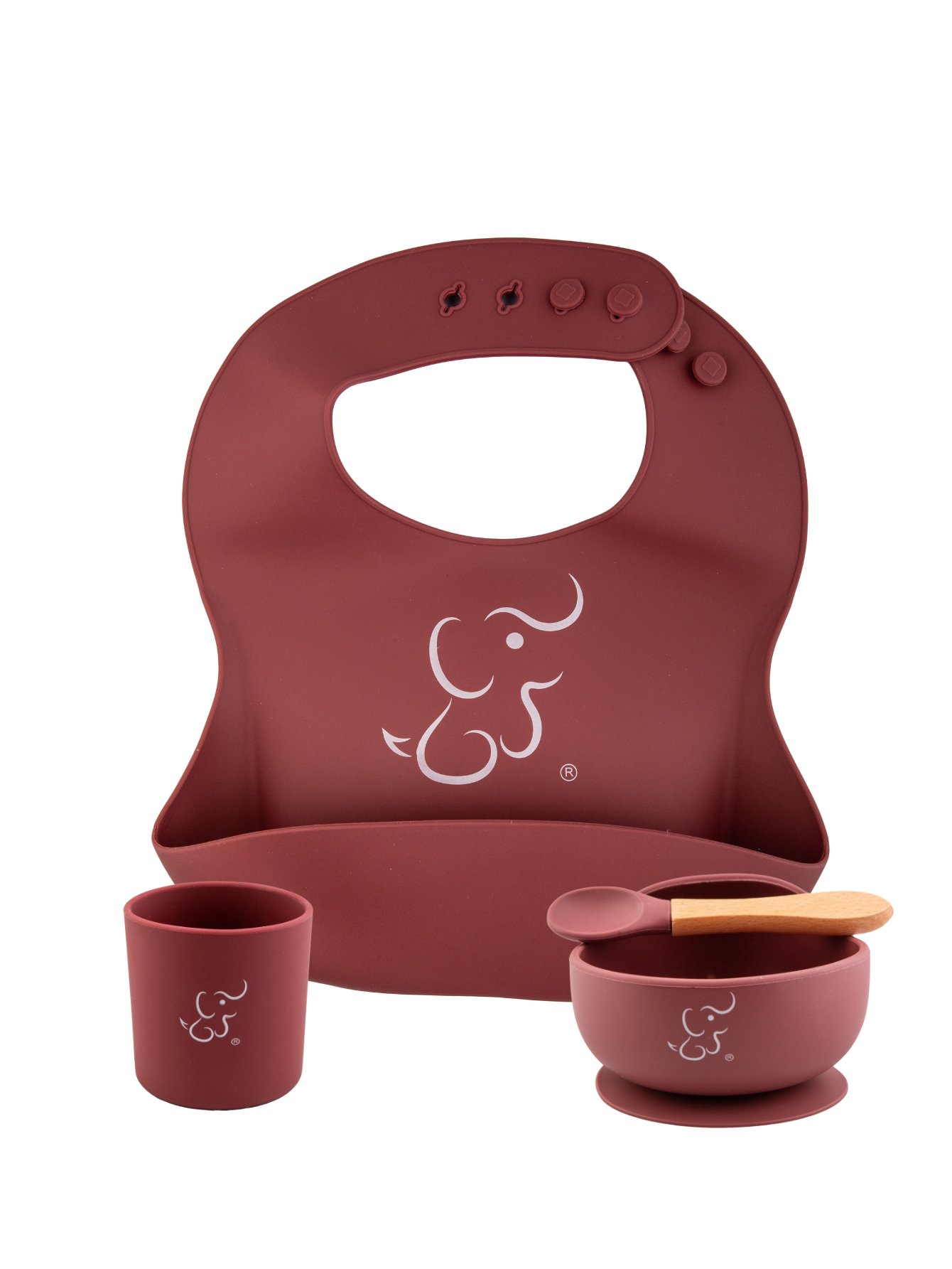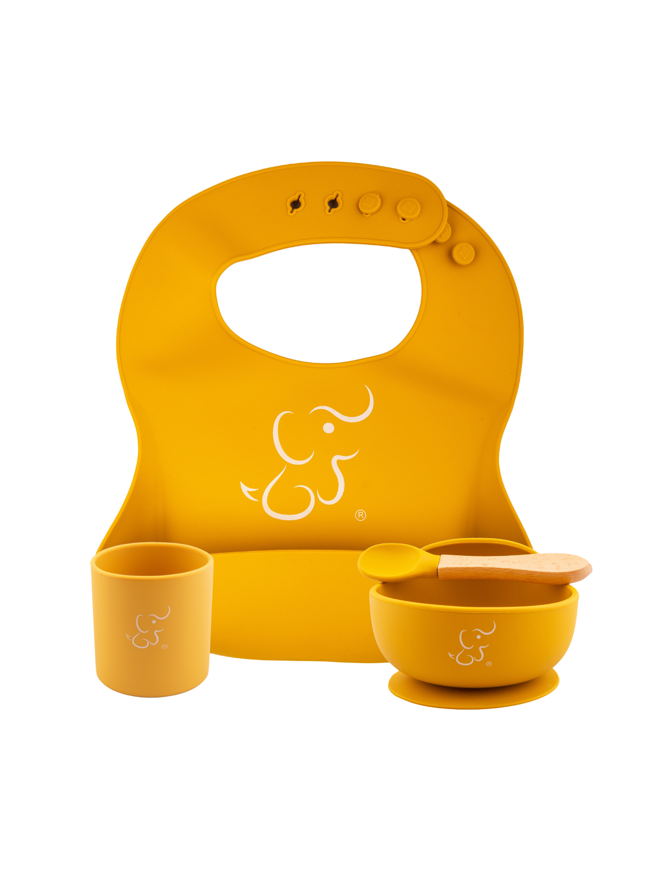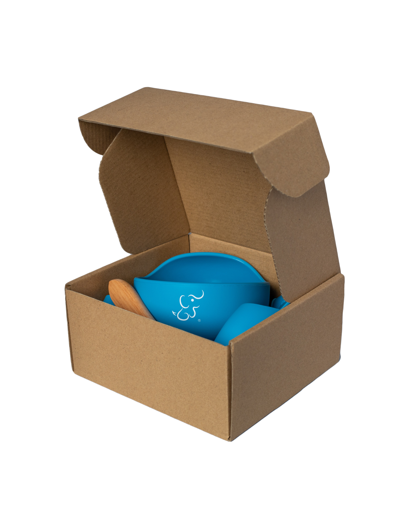 Juego de 1 platos hondo, 1 vaso y 1 babero de silicón Papu Baby 100% grado alimenticio