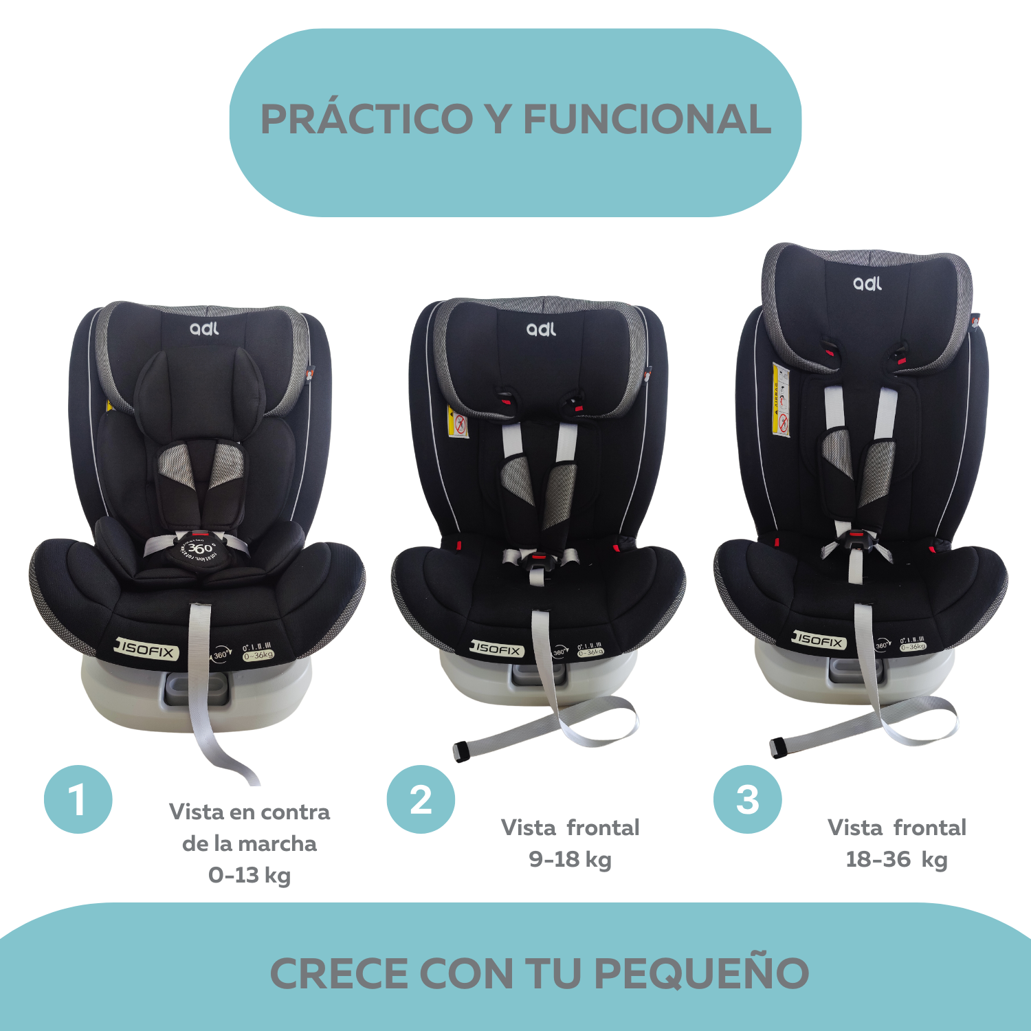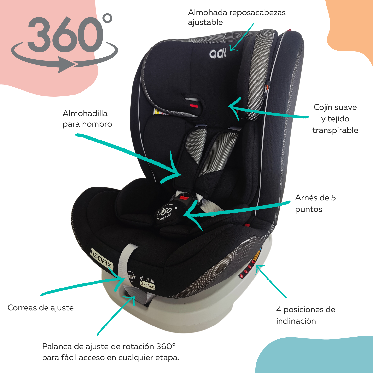 El autoasiento PAPU BABY 360 ° es una excelente opción para mantener a los niños seguros y cómodos durante los viajes en auto. Está diseñada con materiales de alta calidad y cuenta con un respaldo elevado y acolchado que brinda un apoyo óptimo para la cabeza, el cuello y la espalda del niño. Además, su base antideslizante y las correas de seguridad ajustables garantizan una sujeción firme y segura, ya que tiene sujección de 5 puntos de seguridad además de broche central para mayor seguridad. El diseño con giro 360° ayuda a poder sacar y meter a los niños al coche con mayor facilidad, lo cual la hace muy práctica a diferencia de otras sillas para autos.