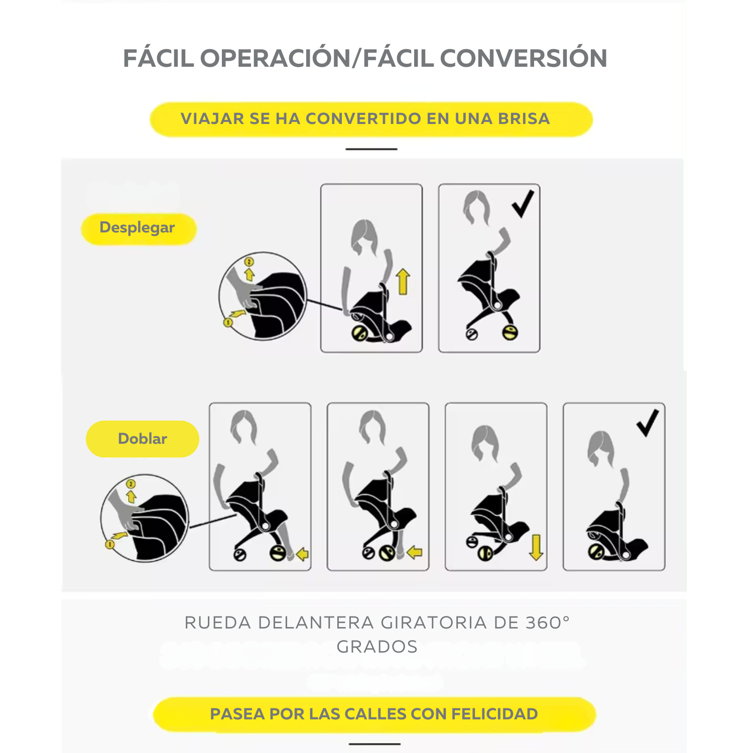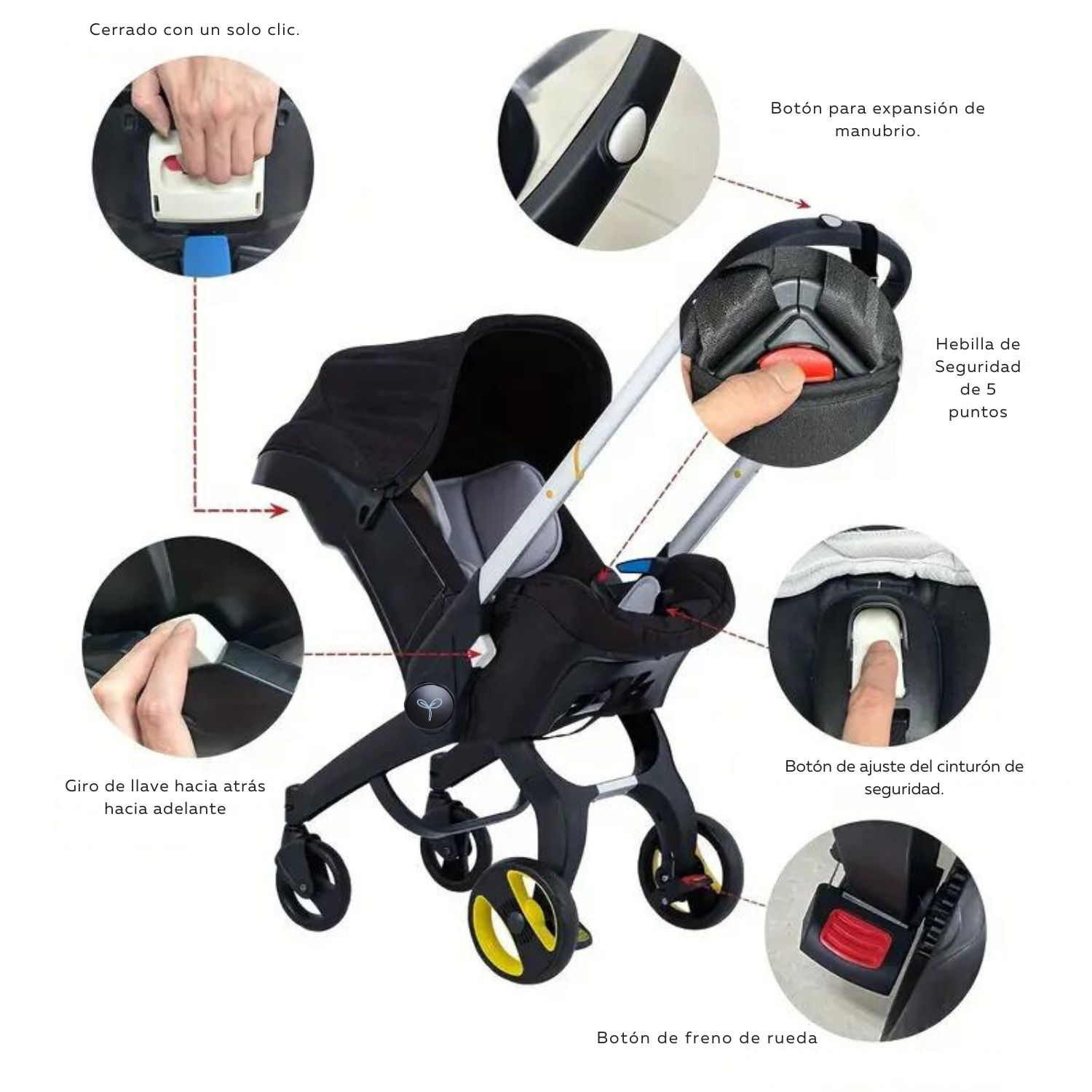 • 2-1: Sistema de autoasiento integrado para mayor comodidad y seguridad mientras viajas. Que viajar con tu bebé sea sencillo y práctico.