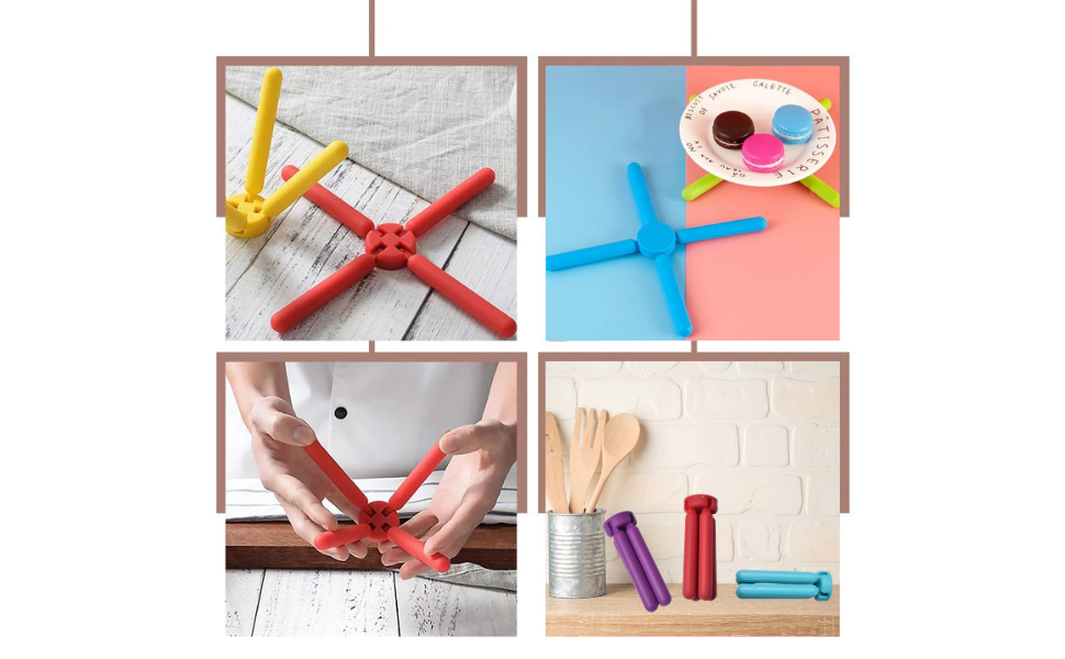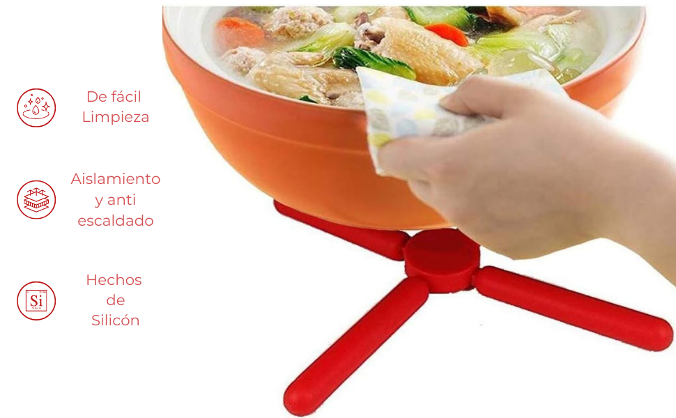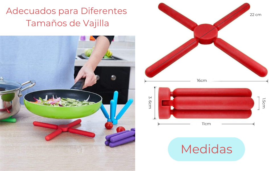 <p>Salvamanteles de siliconón plegables Estos soportes para tabletas y como manteles individuales de cocina, resistentes al frío y al calor, tanto para ollas y sartenes. Tambien puede ser utilizado como soporte para teléfono móvil. Ampliable cuando se utiliza y se puede plegar durante el almacenamiento. Ahorra mucho espacio para almacenar cuando está plegado, ya que cabe fácilmente en un cajón. No raya las superficies, mantiene la mesa segura y limpia. Protege tu encimera y mesa de daños por calor y frío. Salvamanteles para mesa de comedor compacto y expandible. Material: siliconón de grado alimenticio. >/p>v