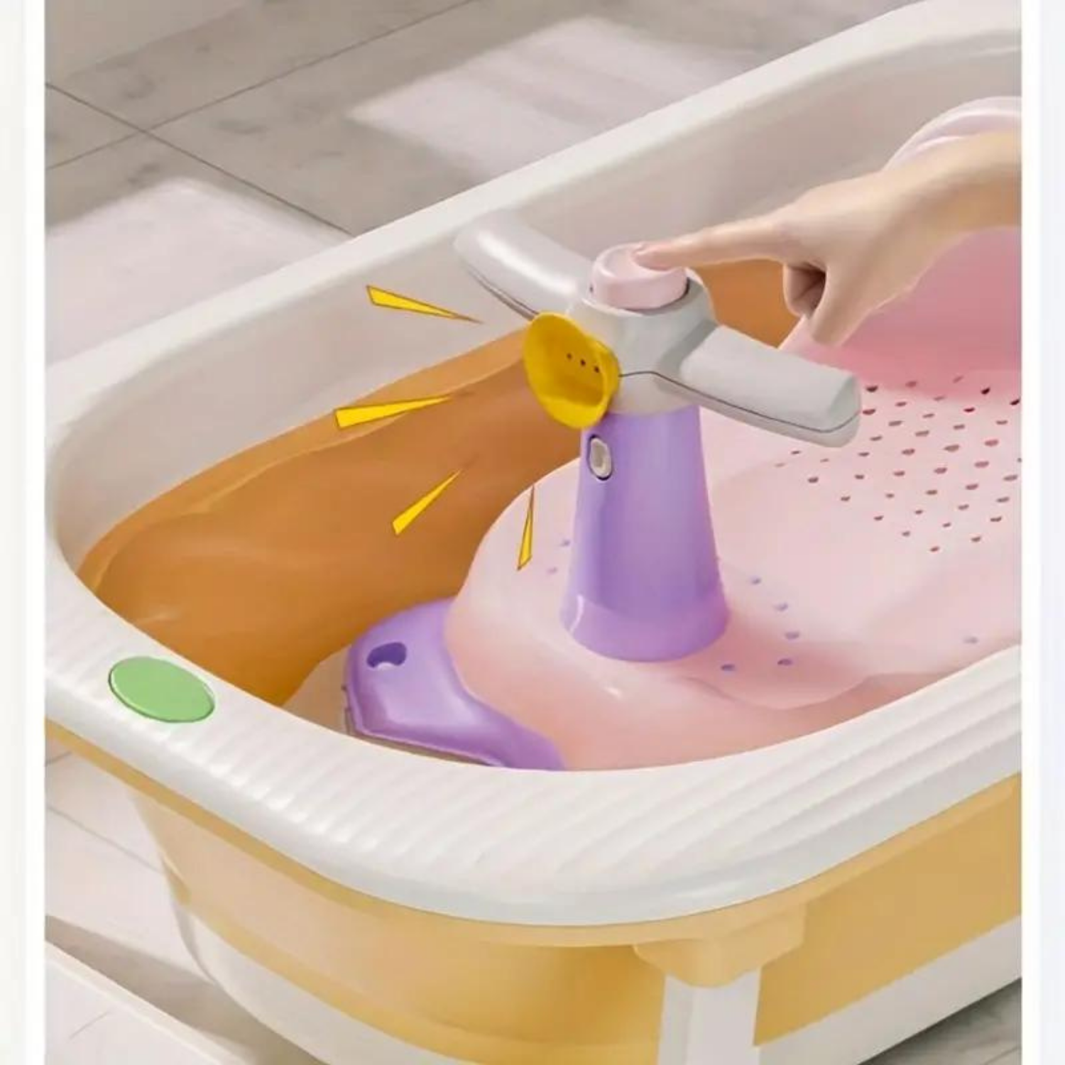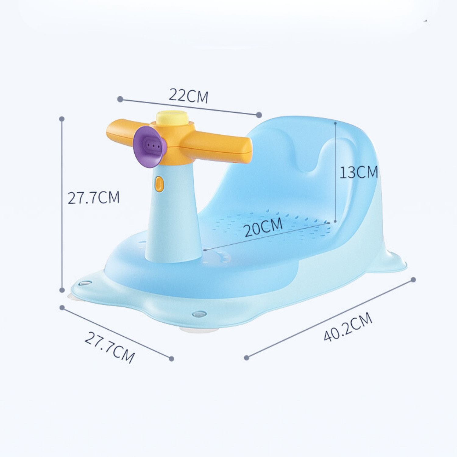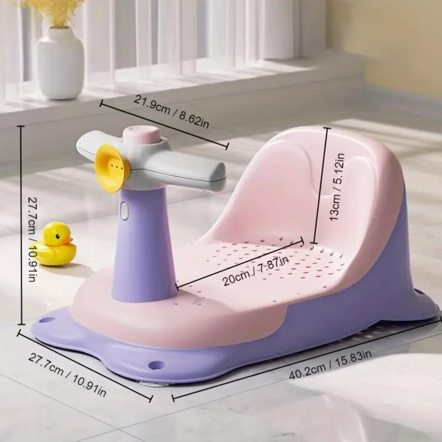 El diseño antideslizante evita que los bebés se caigan. Proteja la columna vertebral de su bebé; el cómodo respaldo alto permite que el bebé se apoye y apoye eficazmente la columna. El agua se escurre con facilidad. Fácil de usar, limpiar y almacenar.