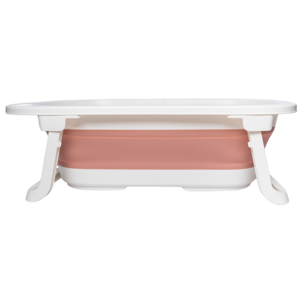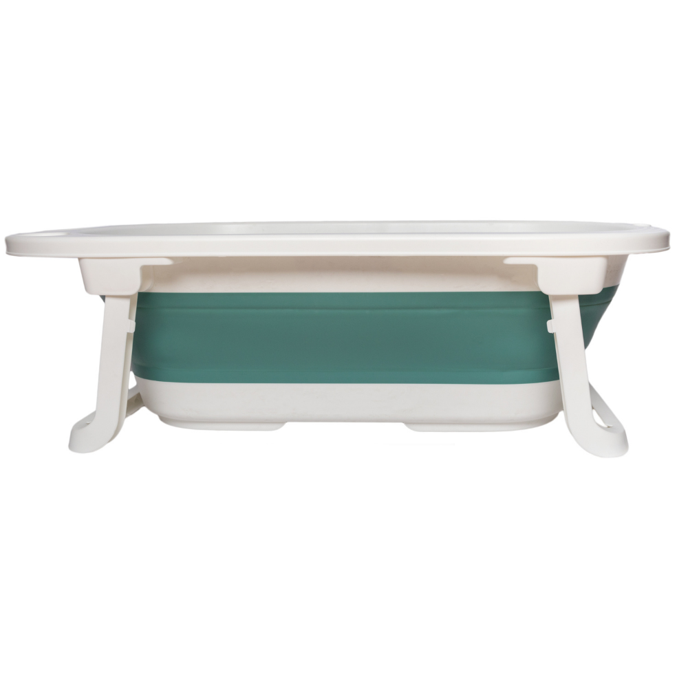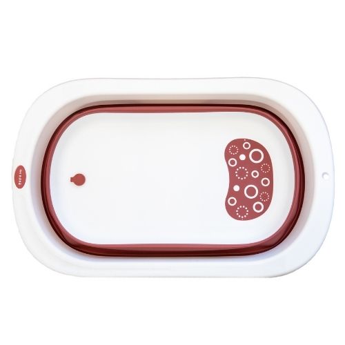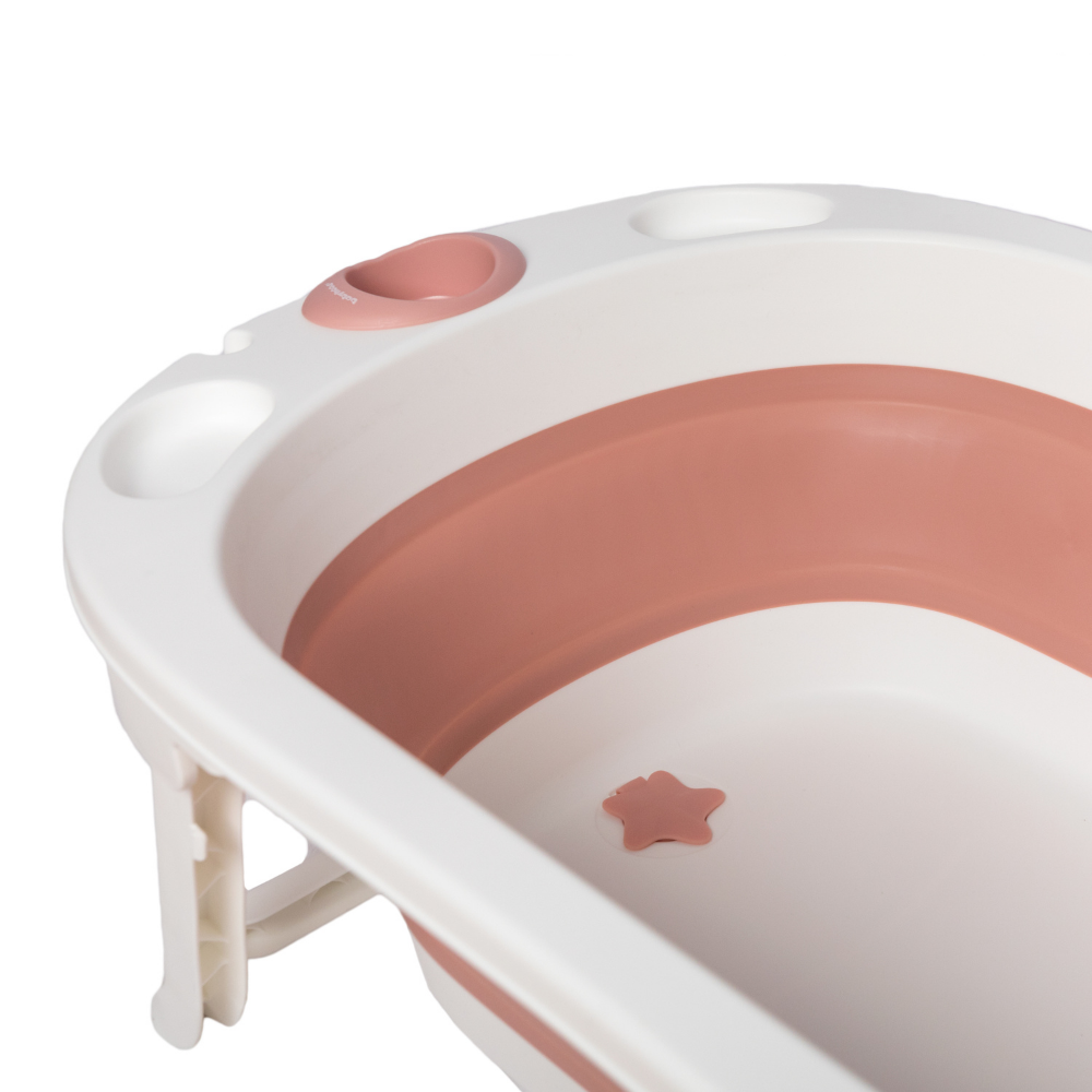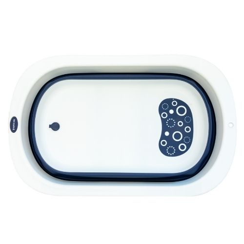 Por su diseño plegable no ocupa mucho espacio a la hora de guardarlo y cuenta con un orificio para colgarla. Tiene 2 posiciones,, se expande para poder bañar tanto a bebés recién nacidos como a niños más grandes. Además se puede poner en posición reclinada para ayudar en el momento de bañar a un recién nacido que aún no sostiene por sí solo la cabeza y el torso, y así mantenerla fuera del agua. Cuenta con un orificio de drenaje inferior con tapón, para sacar el agua con mayor facilidad y un espacio para poner el jabón y shampoo.