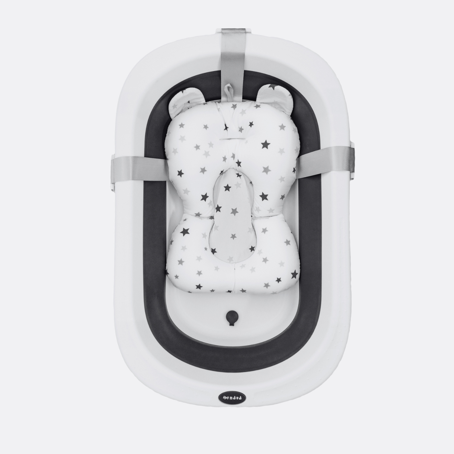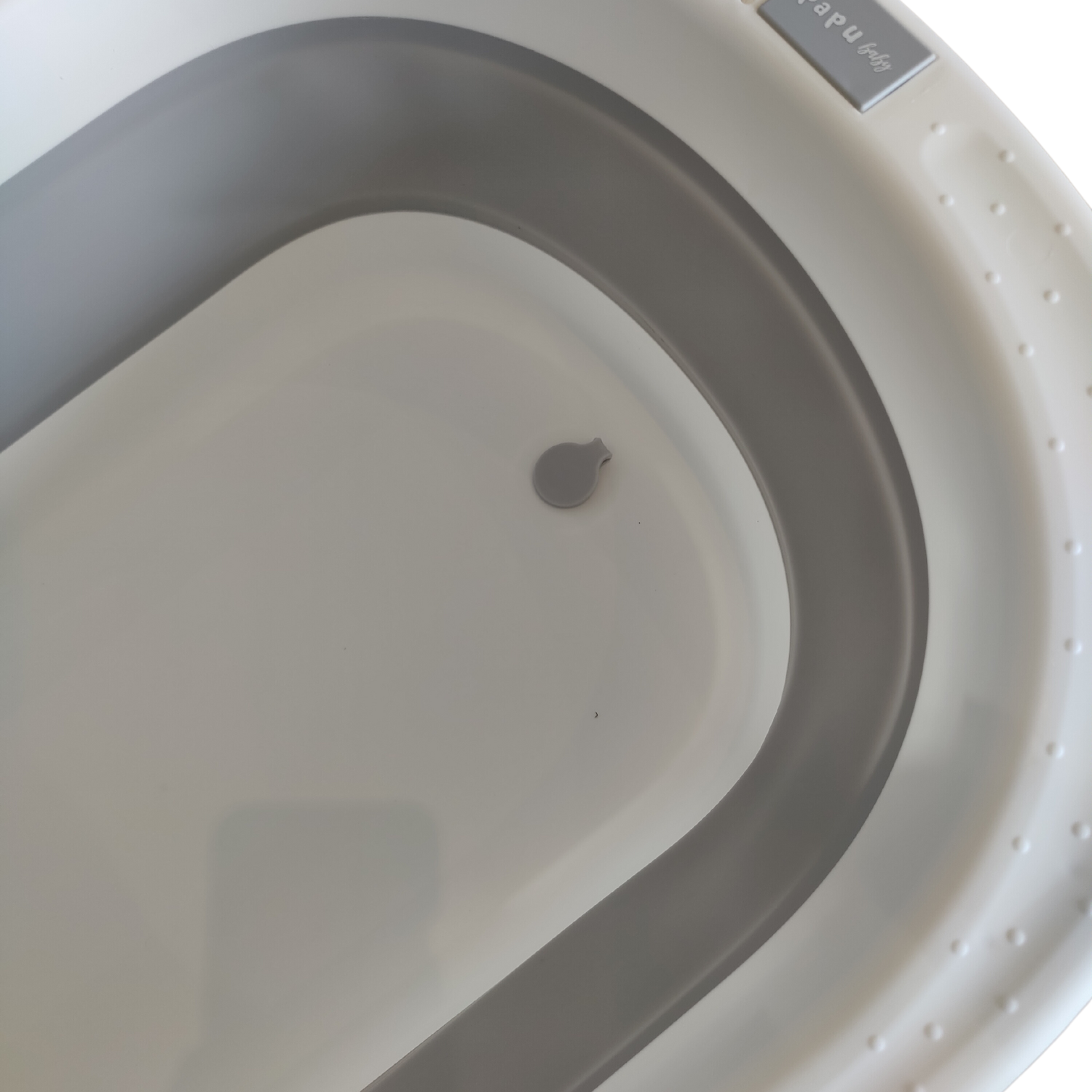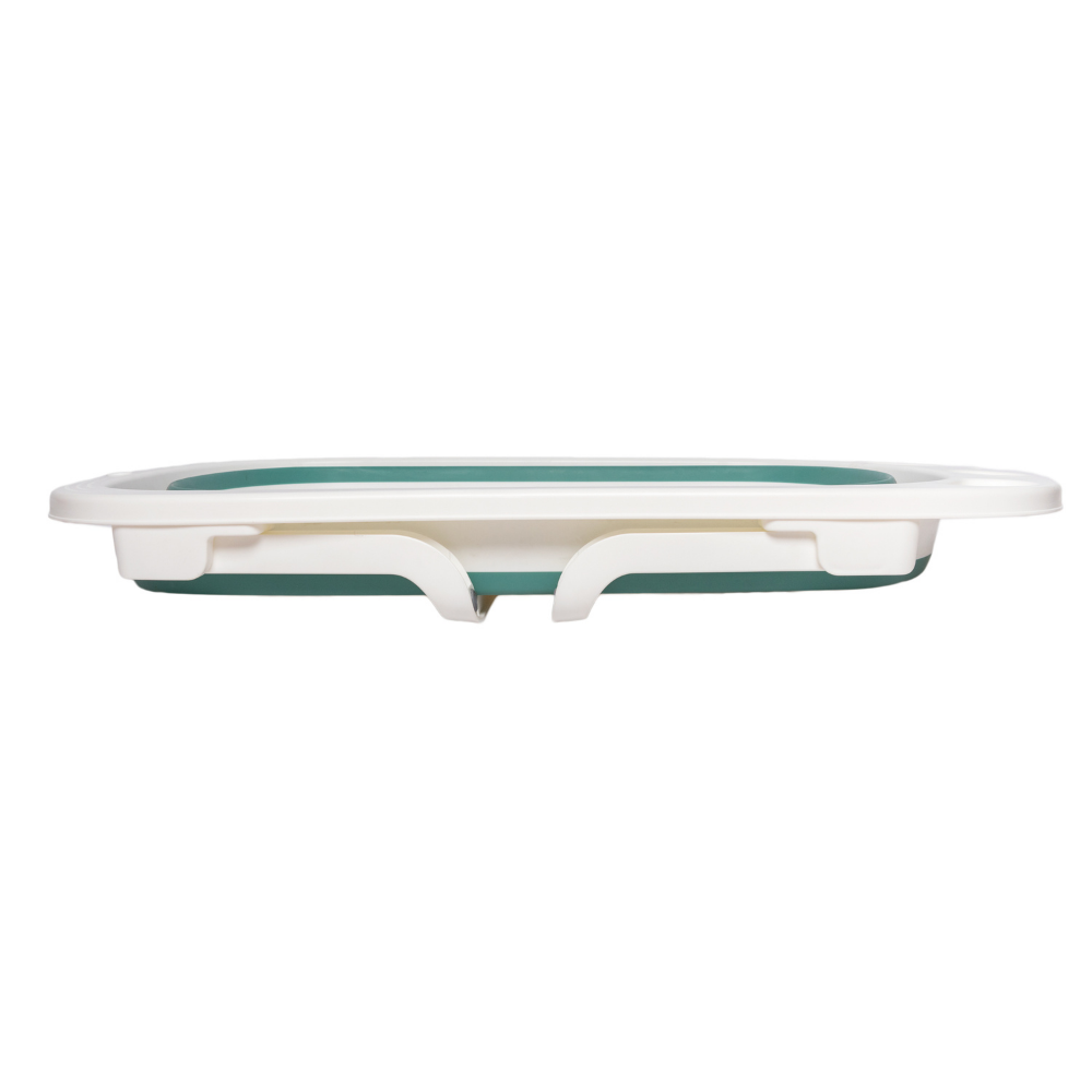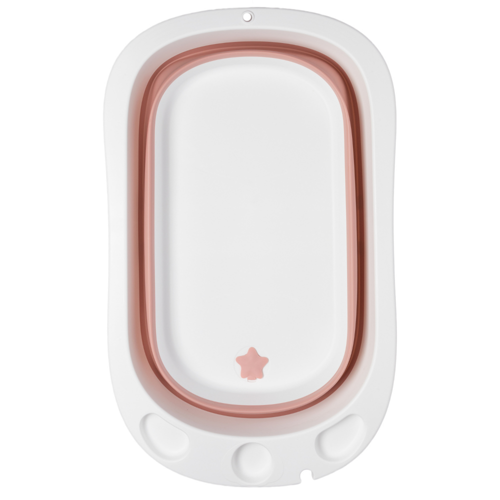 Por su diseño plegable no ocupa mucho espacio a la hora de guardarlo y cuenta con un orificio para colgarla. Tiene 2 posiciones,, se expande para poder bañar tanto a bebés recién nacidos como a niños más grandes. Además se puede poner en posición reclinada para ayudar en el momento de bañar a un recién nacido que aún no sostiene por sí solo la cabeza y el torso, y así mantenerla fuera del agua. Cuenta con un orificio de drenaje inferior con tapón, para sacar el agua con mayor facilidad y un espacio para poner el jabón y shampoo.
