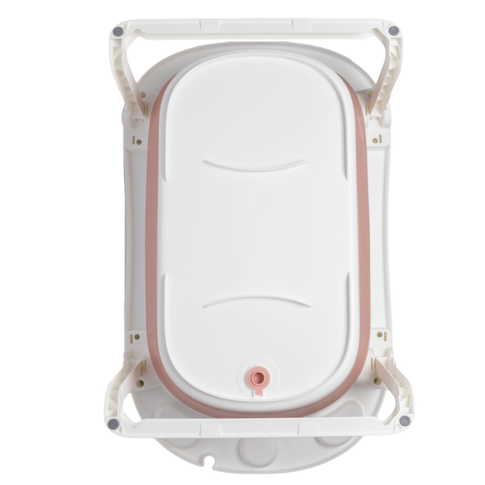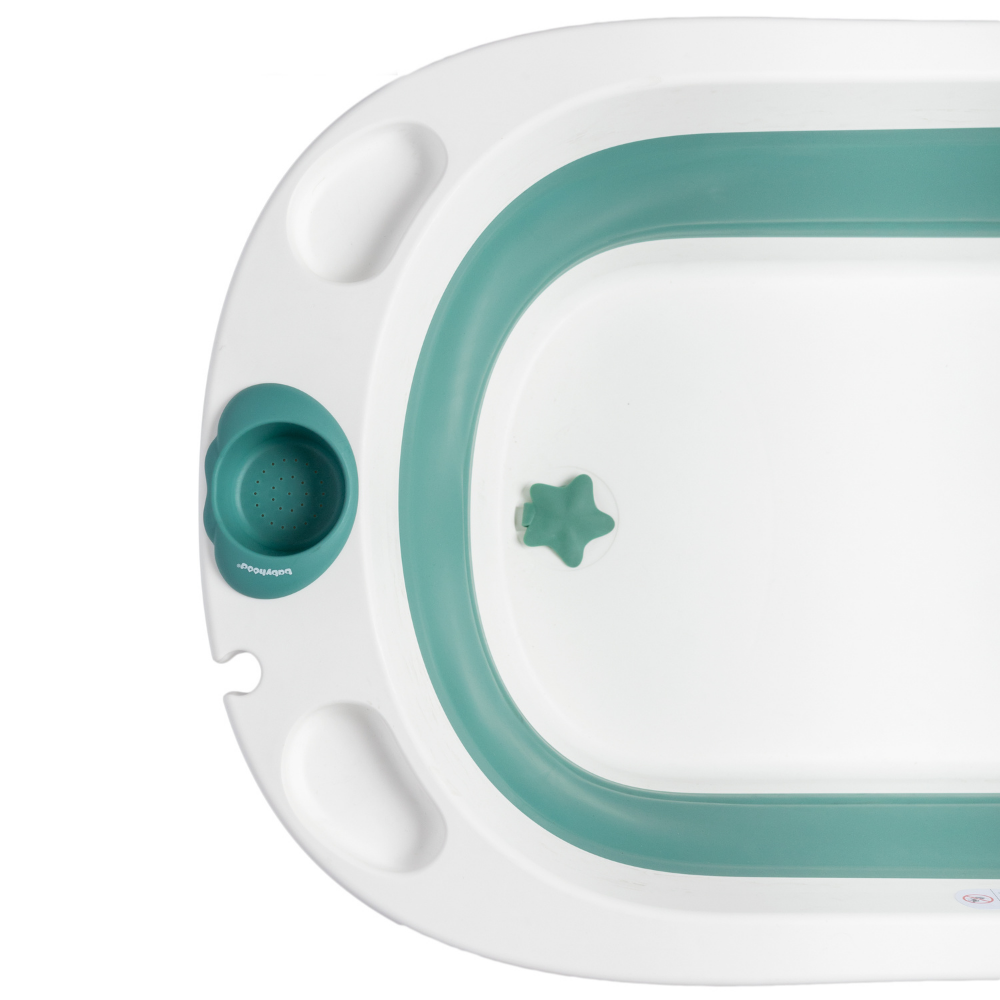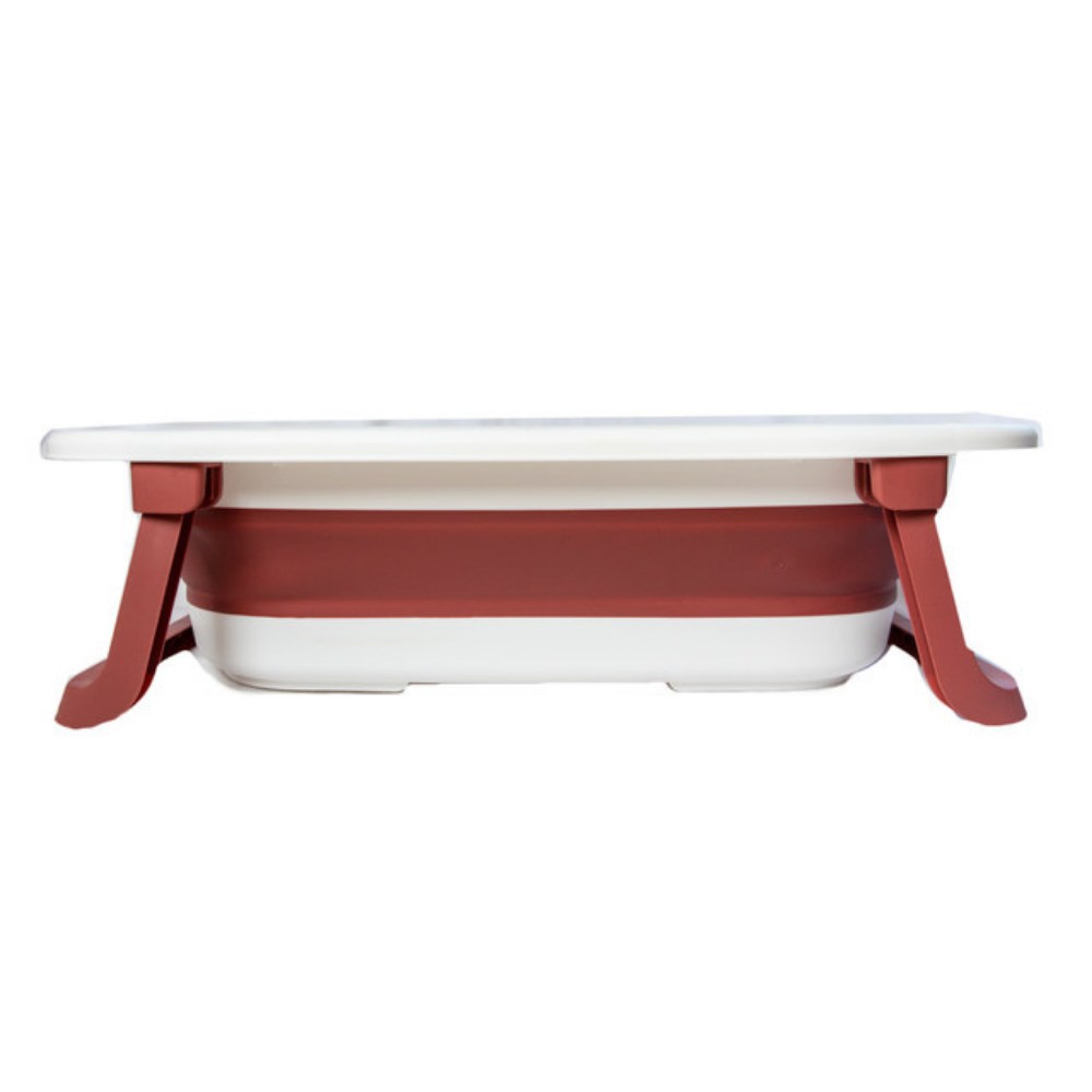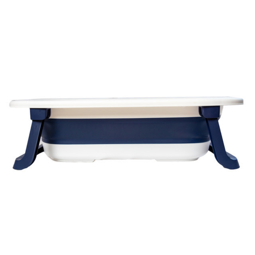Por su diseño plegable no ocupa mucho espacio a la hora de guardarlo y cuenta con un orificio para colgarla. Tiene 2 posiciones,, se expande para poder bañar tanto a bebés recién nacidos como a niños más grandes. Además se puede poner en posición reclinada para ayudar en el momento de bañar a un recién nacido que aún no sostiene por sí solo la cabeza y el torso, y así mantenerla fuera del agua. Cuenta con un orificio de drenaje inferior con tapón, para sacar el agua con mayor facilidad y un espacio para poner el jabón y shampoo.