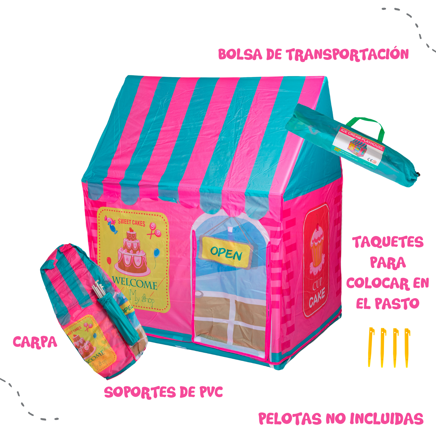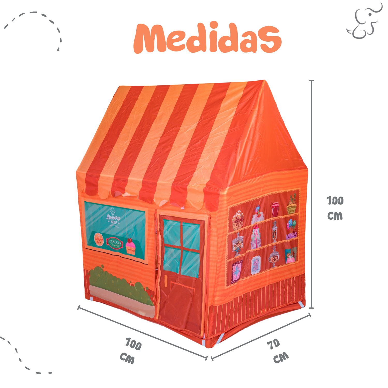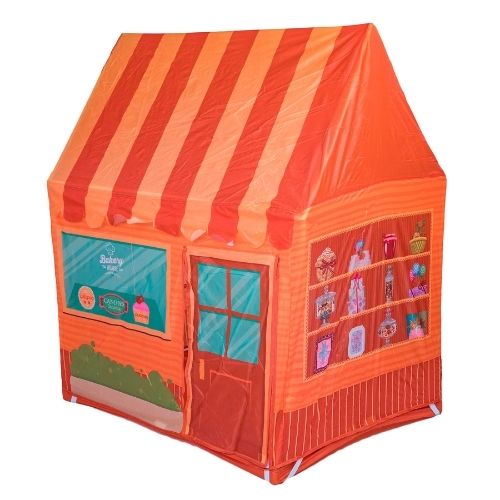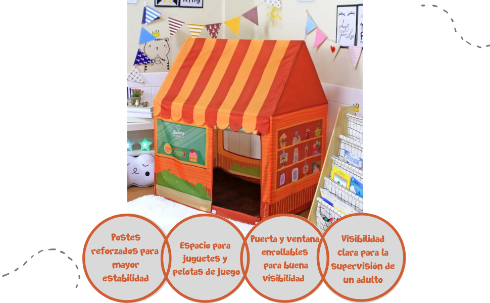 A los niños les encanta disfrutar de la sensación de tener su propio espacio donde explorar y jugar. Tal vez por eso tus hijos siempre insisten en que montes una casa de juego. Las tiendas de campaña siempre son un éxito entre los niños, pero construir una con mantas, cojines y sábanas no es una tarea fácil. Deja las casas de mantas temporales atrás y utiliza nuestra Casa de Campaña Casita de Helados/Bake Shop, Plat Tent para una sesión de juego sin complicaciones.