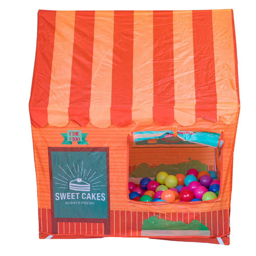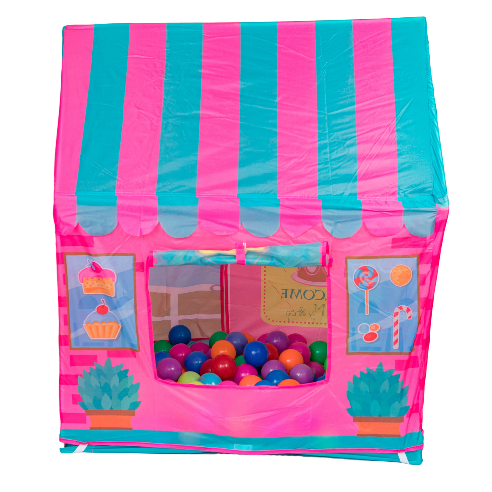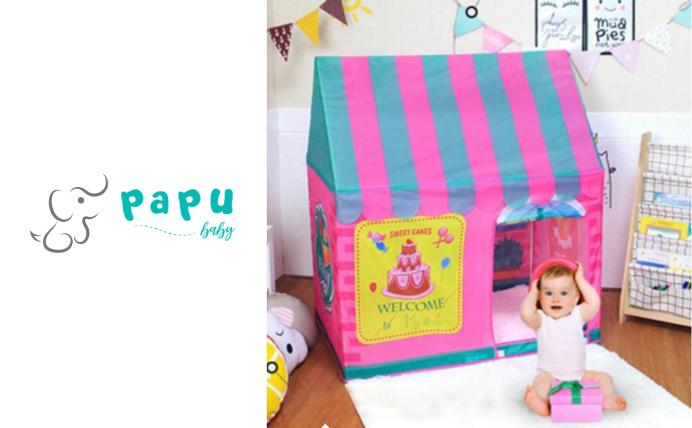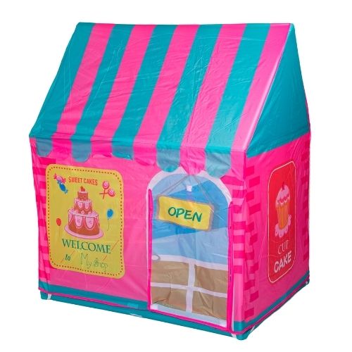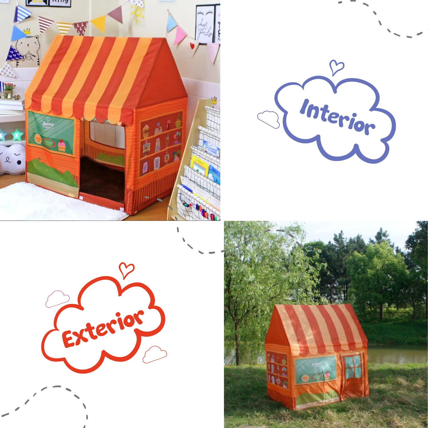 A los niños les encanta disfrutar de la sensación de tener su propio espacio donde explorar y jugar. Tal vez por eso tus hijos siempre insisten en que montes una casa de juego. Las tiendas de campaña siempre son un éxito entre los niños, pero construir una con mantas, cojines y sábanas no es una tarea fácil. Deja las casas de mantas temporales atrás y utiliza nuestra Casa de Campaña Casita de Helados/Bake Shop, Plat Tent para una sesión de juego sin complicaciones.