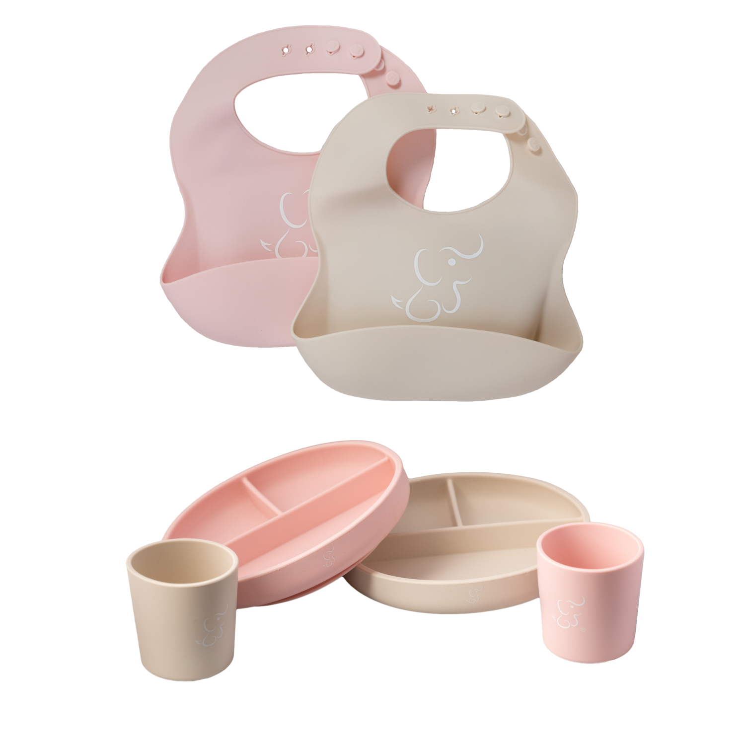 PAPU BABY Set de Alimentación - 2 Baberos, 2 Platos de Divisiones Circulares y 2 Vasos