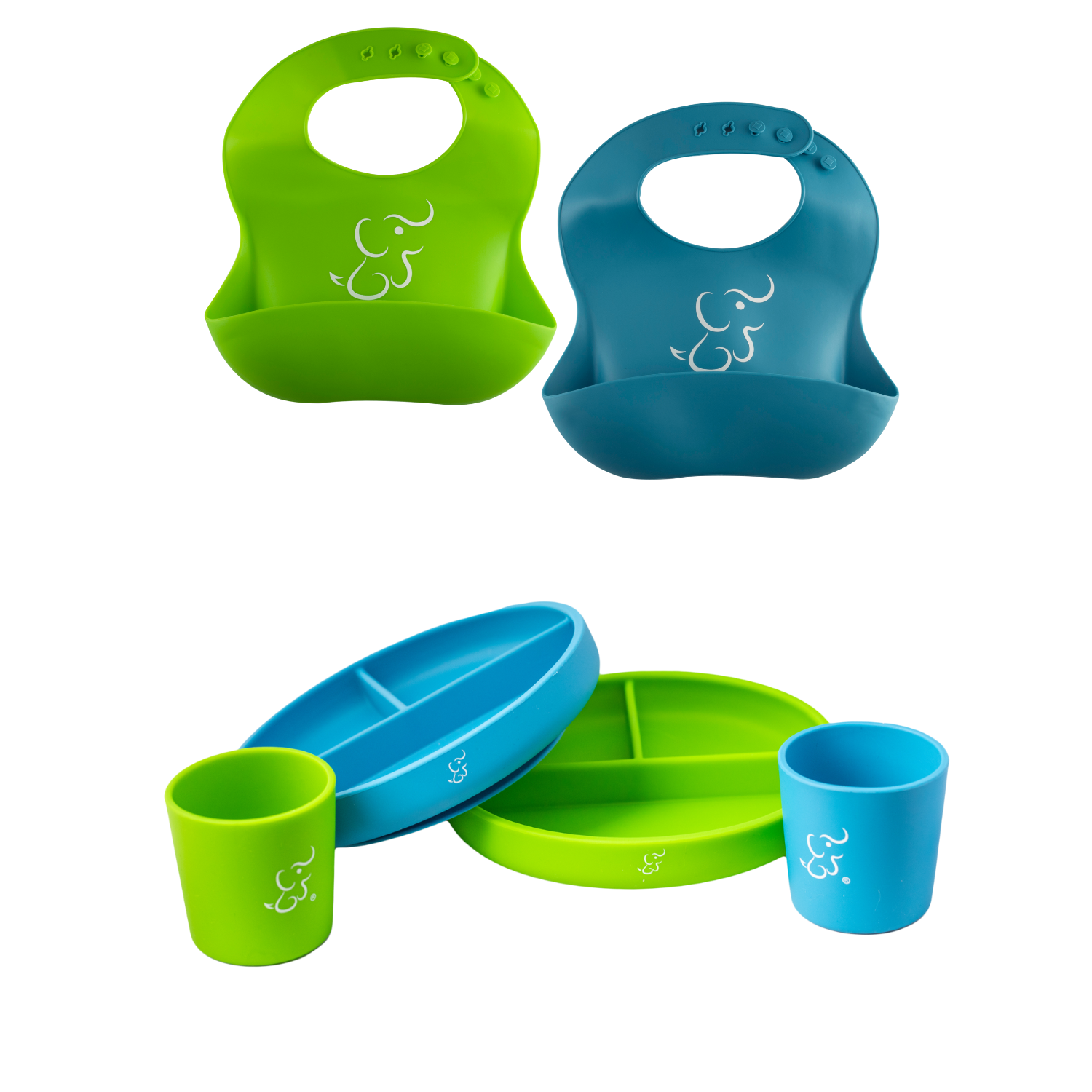 Juego de 1 platos hondo, 1 vaso y 1 babero de silicón Papu Baby 100% grado alimenticio