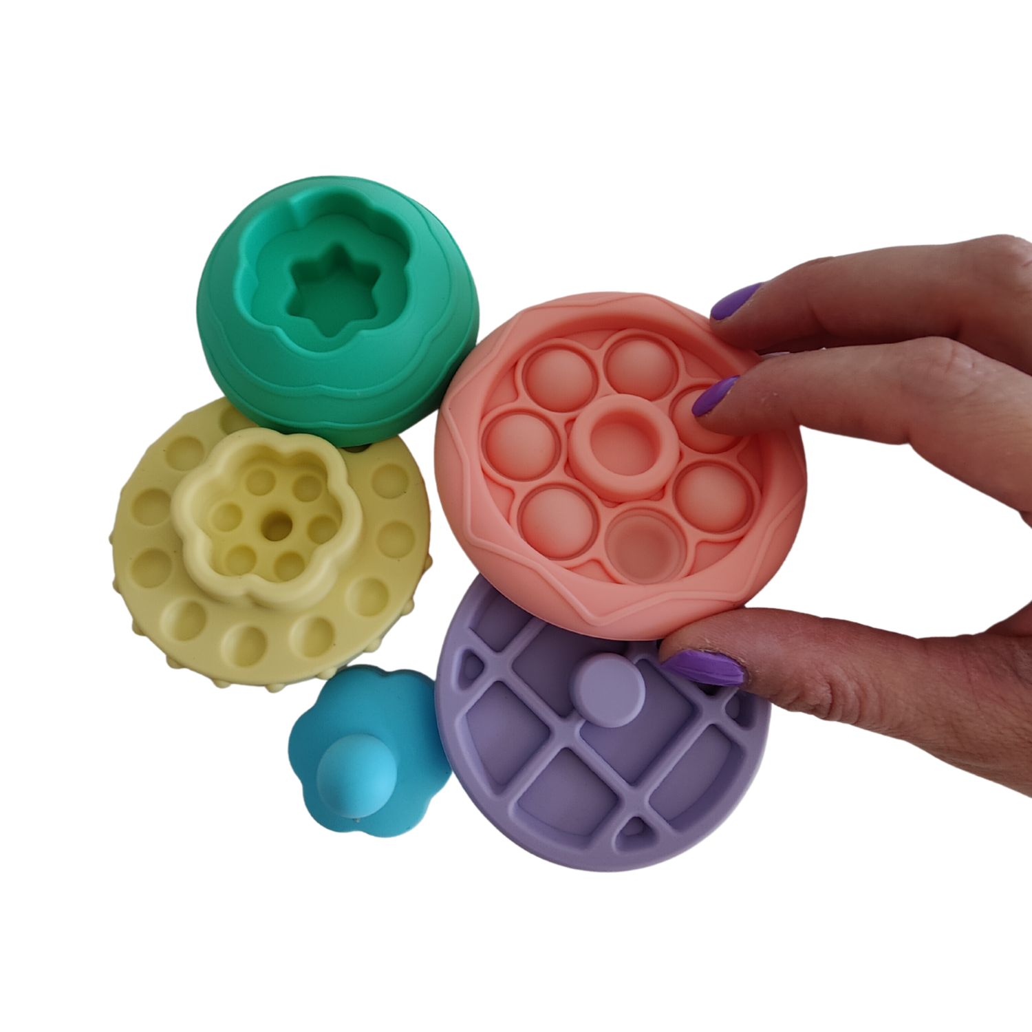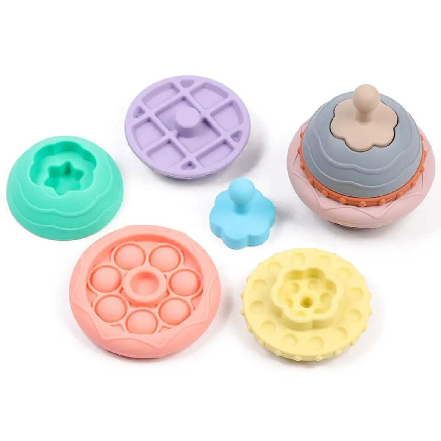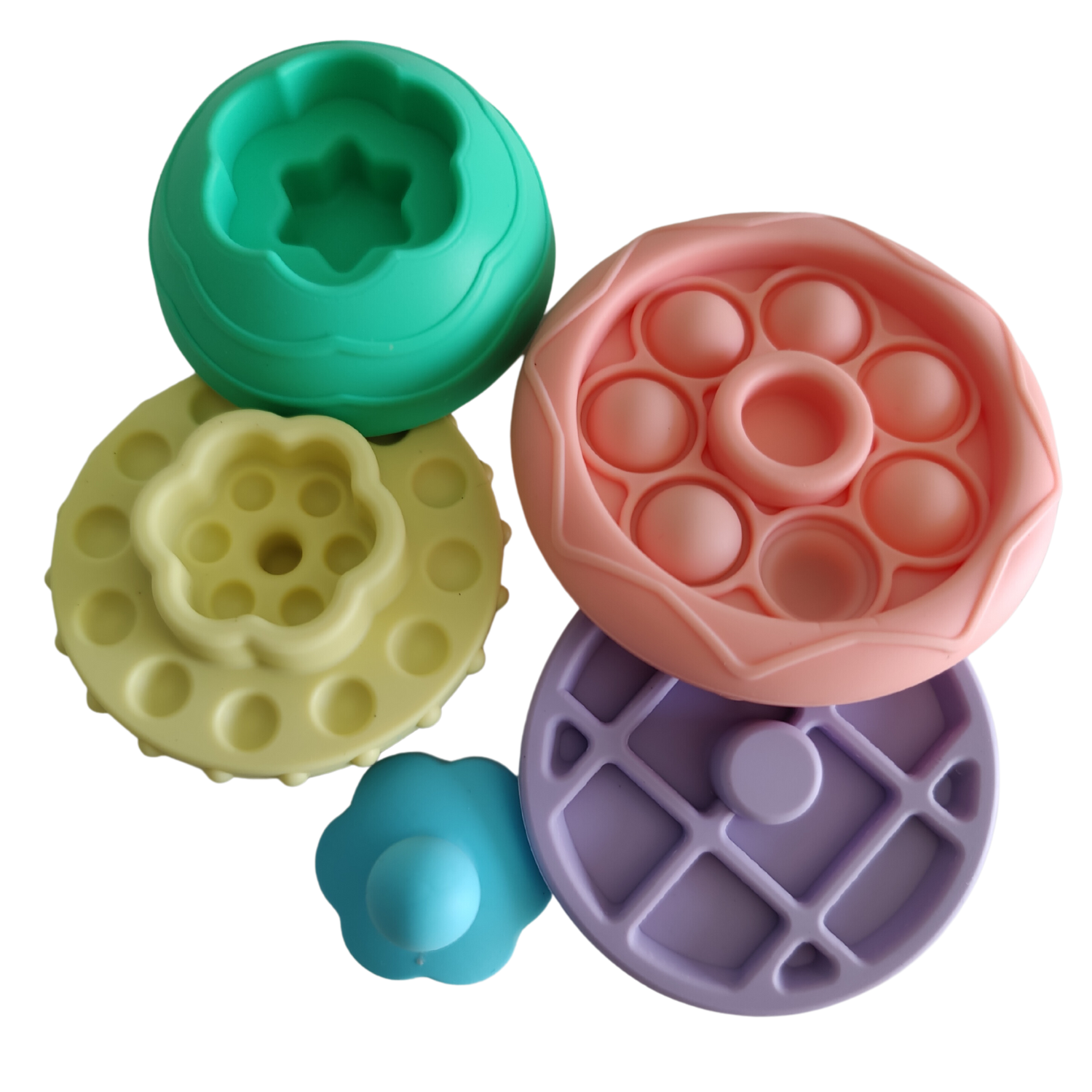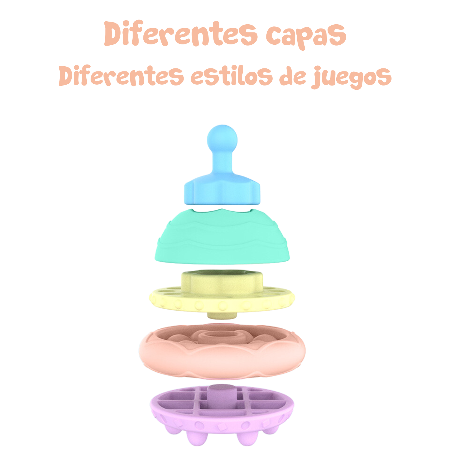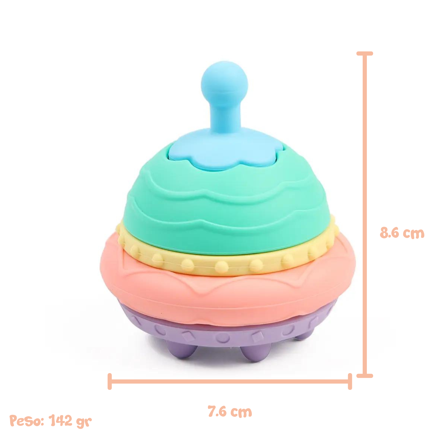 UFO/OVNI de silicón para bebés y niños pequeños. Juguete Didáctico Apilable (5 piezas diferentes)